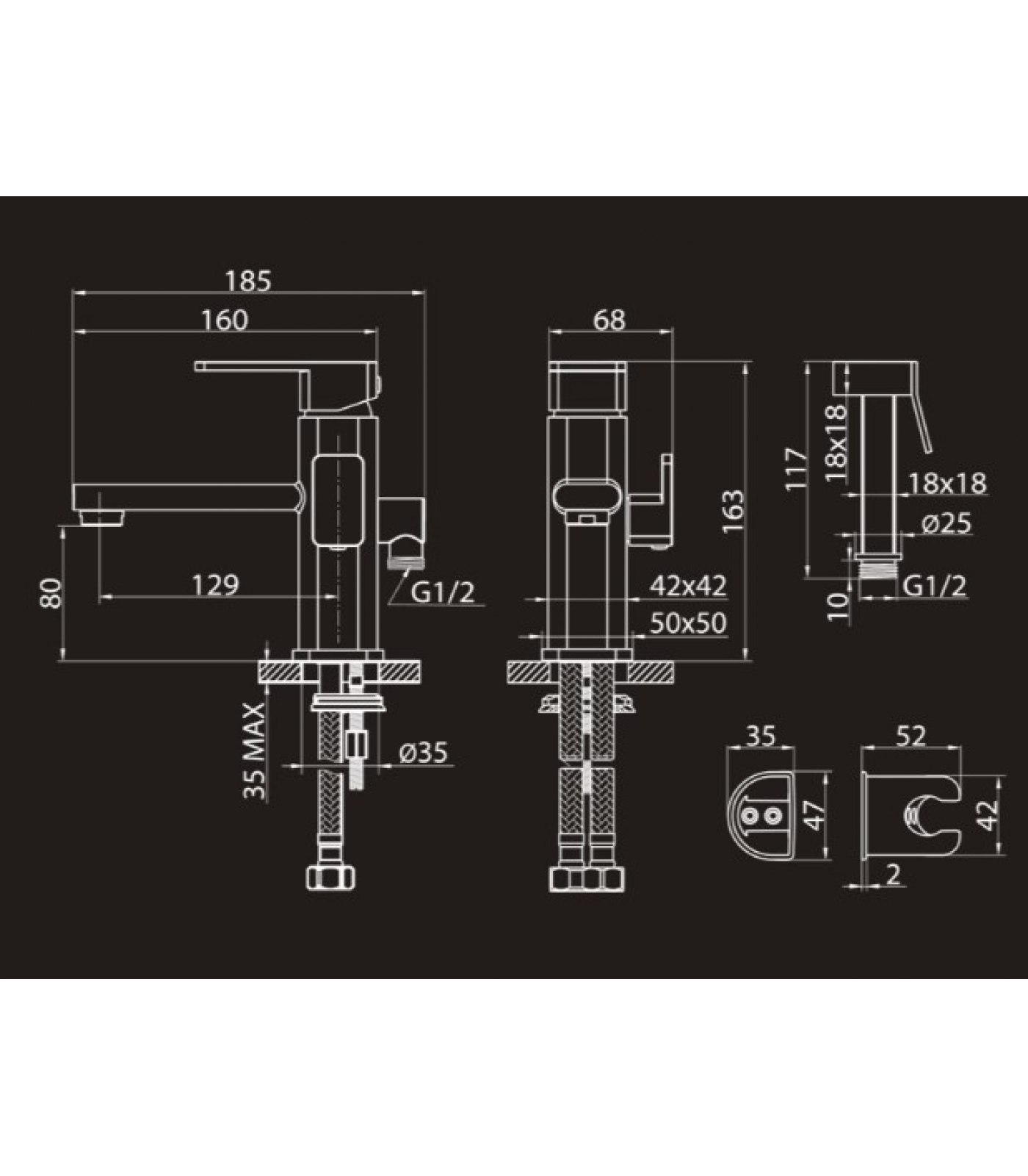 Комплектация: Смеситель, набор крепежа для установки смесителя, 2 гибких шланга для подвода воды, душевой шланг 150 см, гигиенический душ арт.BM-02-Chrome.