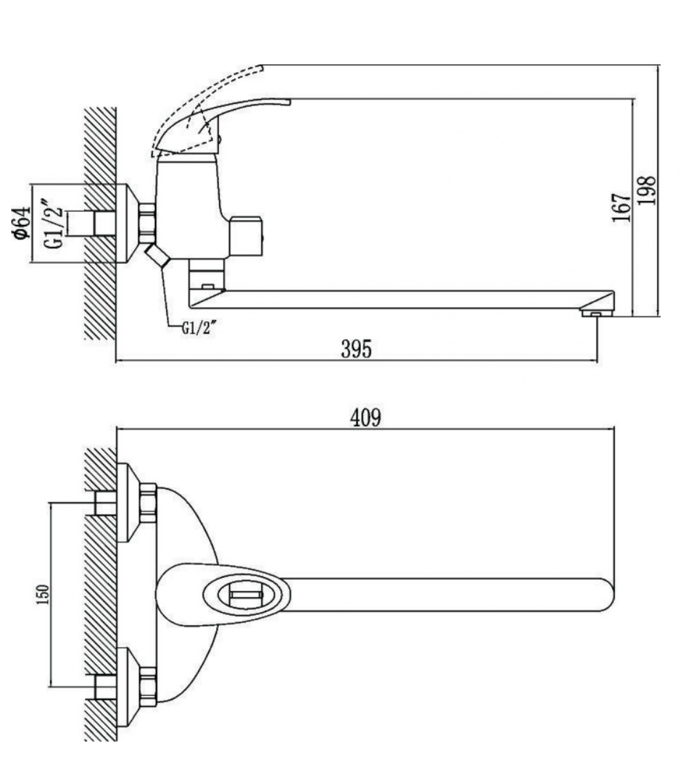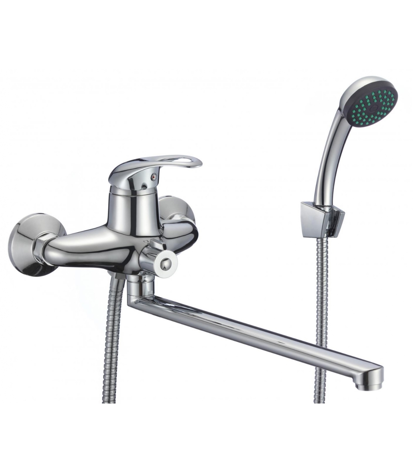 Благодаря длинному поворотному изливу модель может использоваться для ванны и стоящего рядом умывальника.