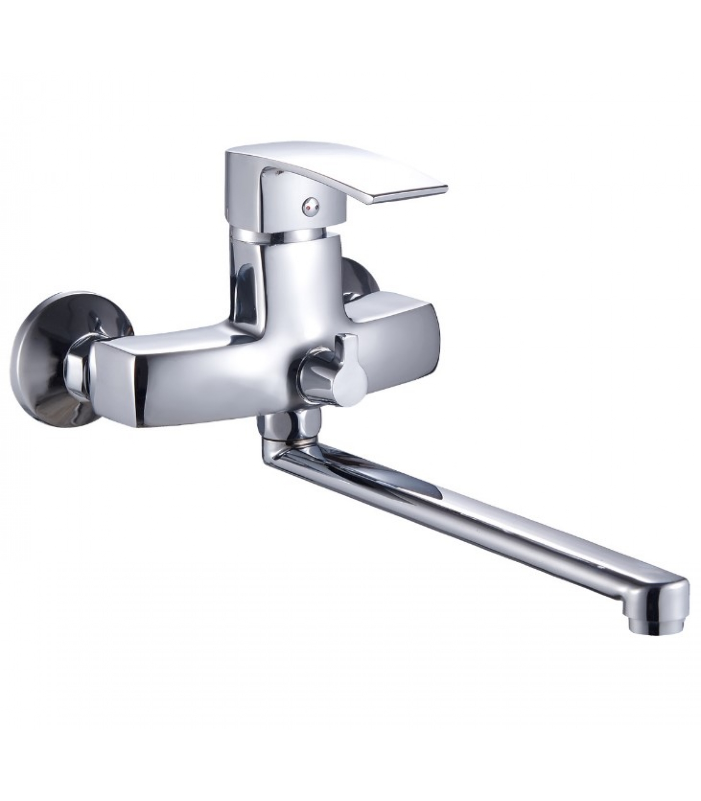 Смеситель для ванны современной формы с однорычажным управлением и длинным поворотным изливом длиной 28 см прекрасно дополнит любое интерьерное решение Вашей ванной комнаты.