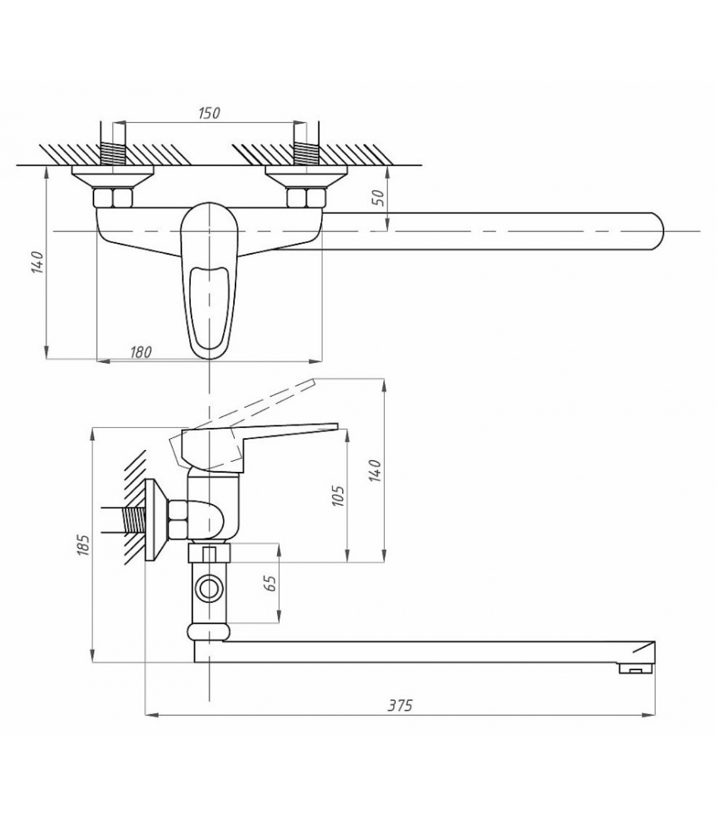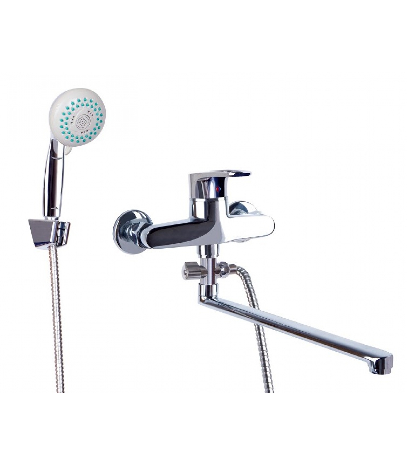 Смеситель для ванны и умывальника, однорукояточный, раздельный, настенный, с душевой сеткой на гибком шланге, с аэратором
