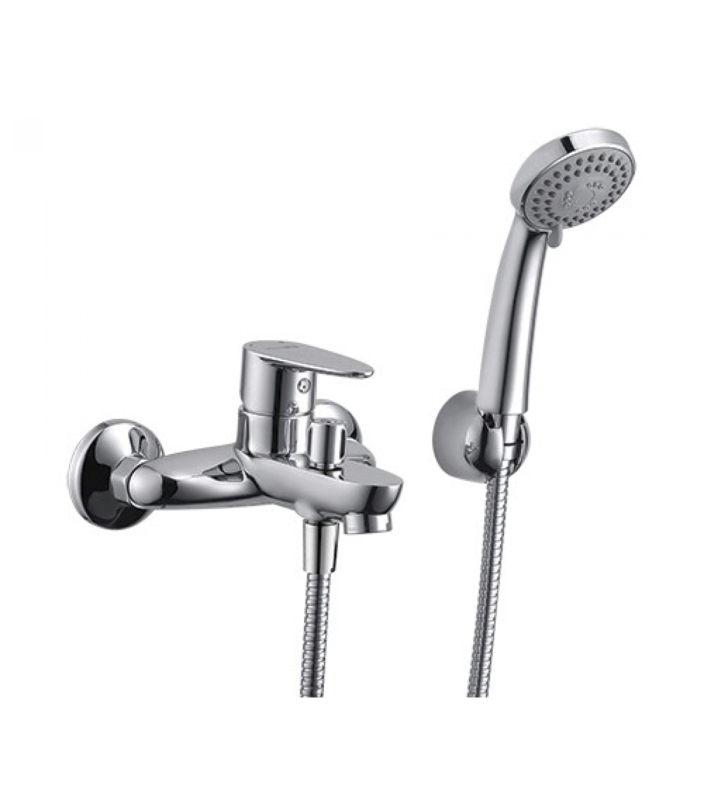 Лейка 3-функциональная с системой защиты от известковых отложений, Шланг металлический 1500 мм, подключение к лейке, Фиксированное настенное крепление для душа