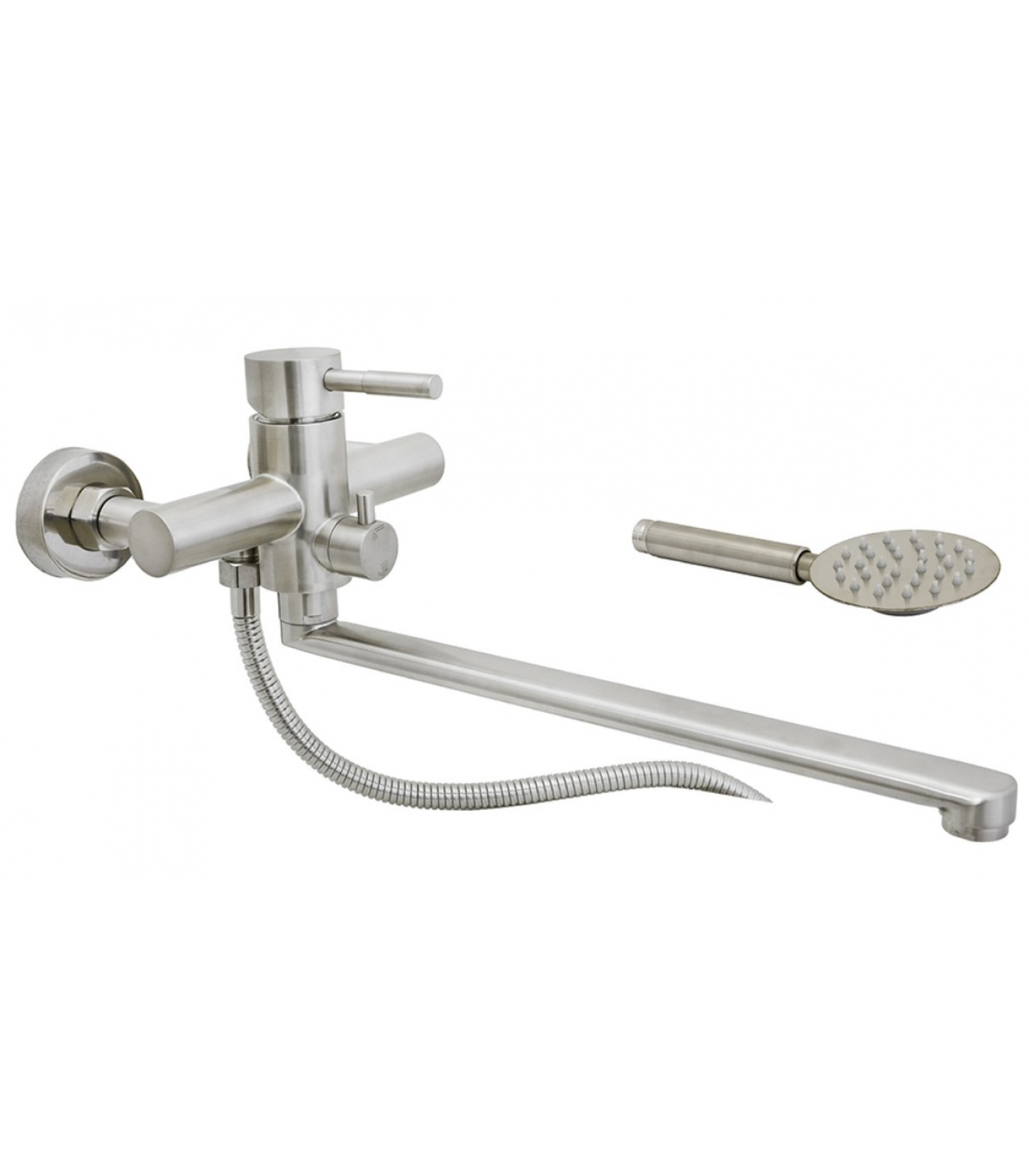 Смеситель для ванны Santrek Aqua 900 INOX нержавеющая сталь, однорычажный, ручной душ, длинный излив