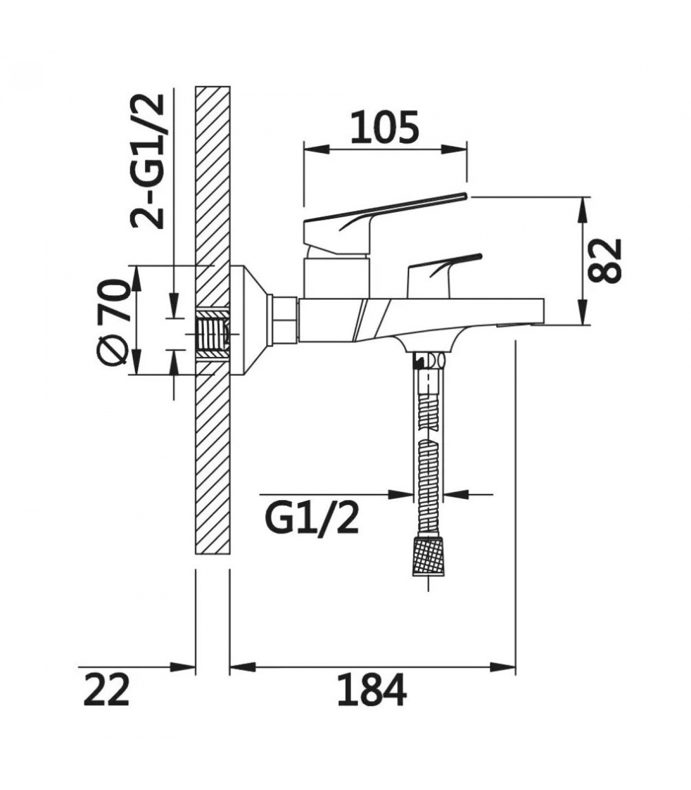 Смеситель предназначен для установки на стену ванной комнаты и подключения к системе горячего и холодного водоснабжения. Он имеет стандартный размер и подходит для большинства ванных комнат.