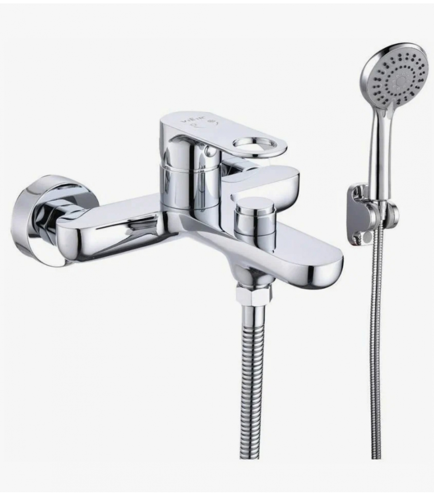 Смеситель для ванны VIEIR V043531, однорычажный, короткий излив, ручной душ