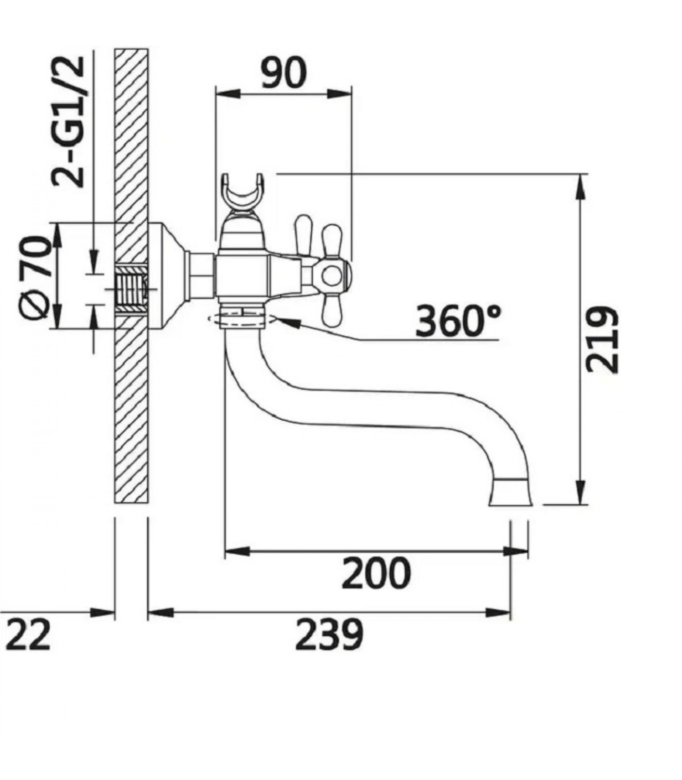 Смеситель изготовлен из высококачественной латуни и имеет хромированное покрытие. Это обеспечивает долговечность и надежность изделия. Смеситель устанавливается на стену с помощью стандартных креплений.