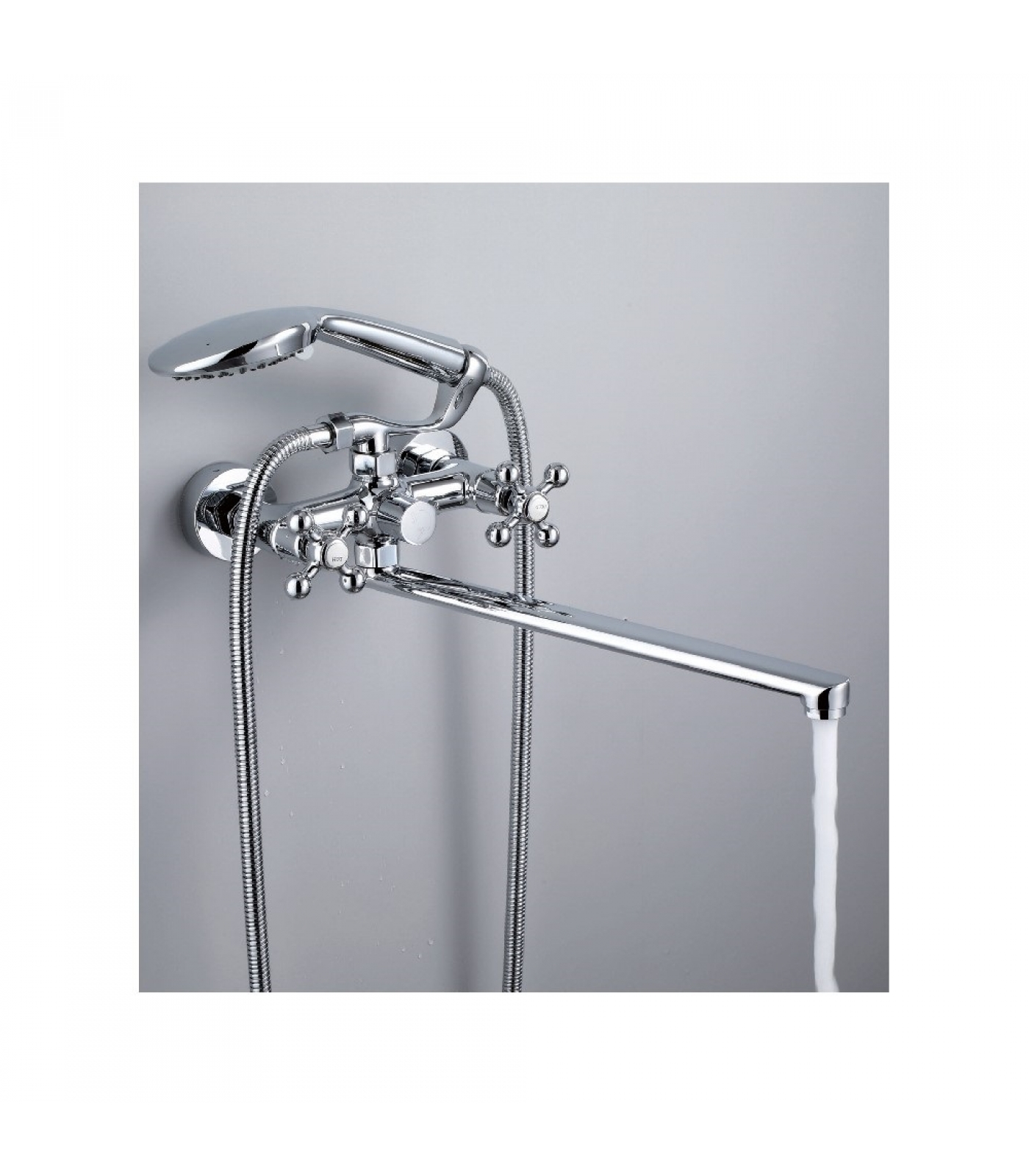 Смеситель для ванны VIEIR V140141, двухвентильный, длинный излив, ручной душ