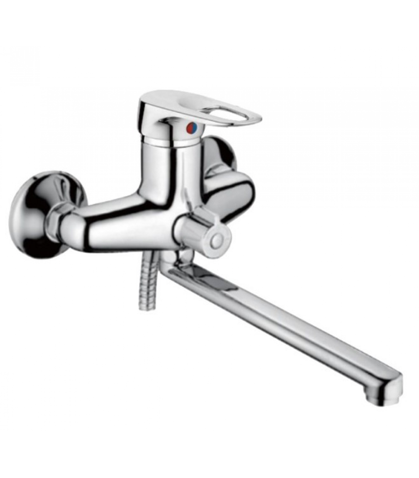 Смеситель для ванны Valfex Alioth Chrome, однорычажный, длинный излив, ручной душ, хром