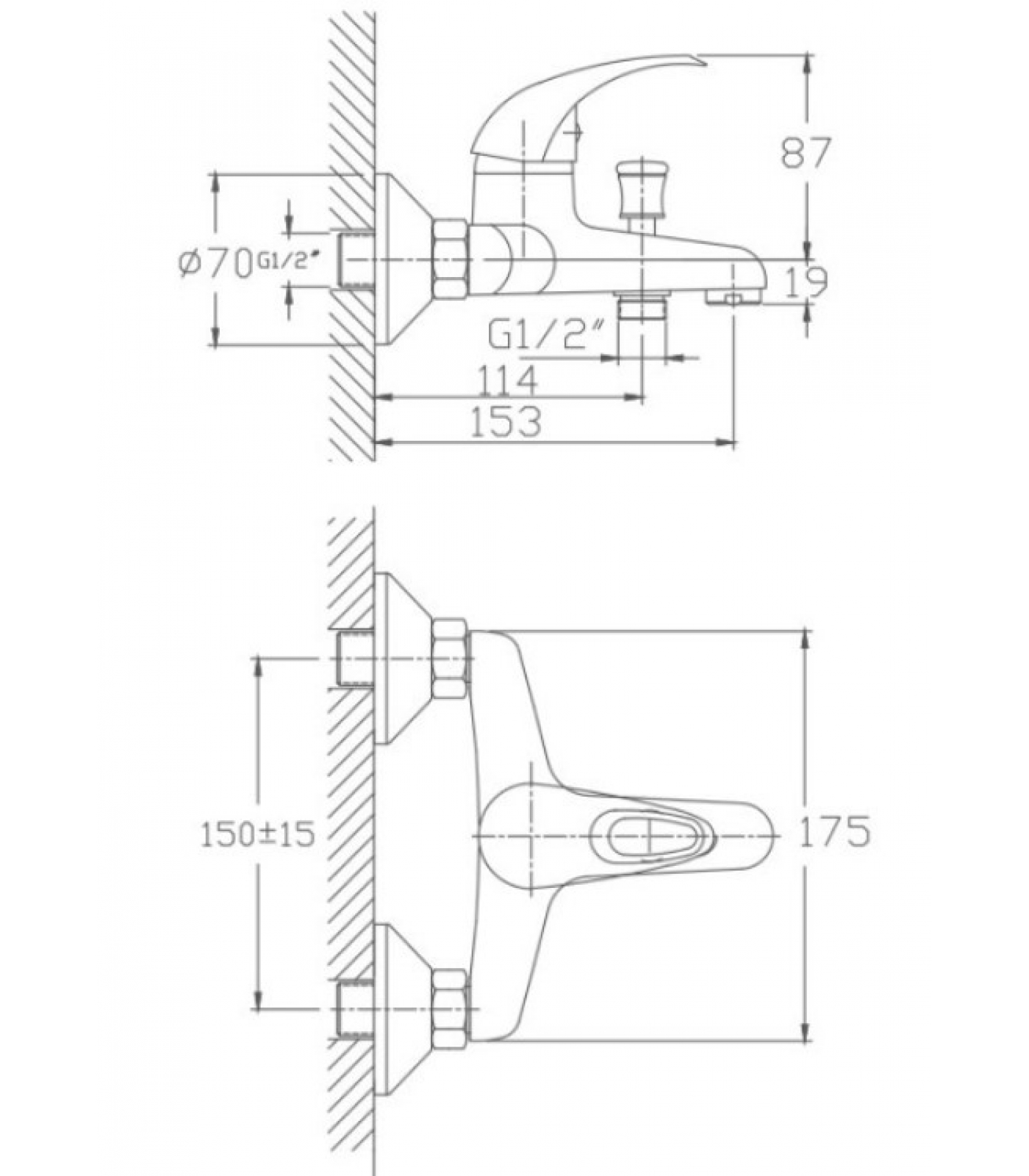 Смеситель предназначен для ванны, устанавливается на стену. Автоматический девиатор. Керамический картридж 35 мм. Диаметр декоративных чашек 70 мм. Душевой гарнитур в комплекте. Межосевое расстояние 150 мм. Данное расстояние изменяется за счет входящих в комплект эксцентриков на 15 мм в большую или меньшую стороны.