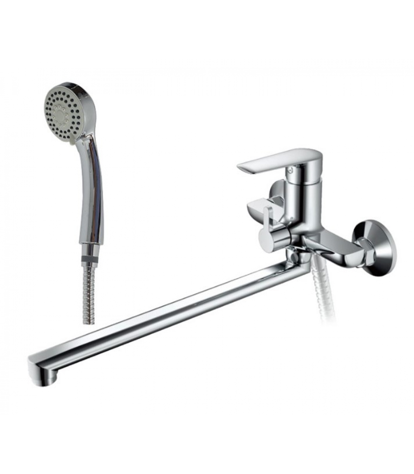 Смеситель для ванны Valfex Elara Chrome, однорычажный, длинный излив, ручной душ, хром