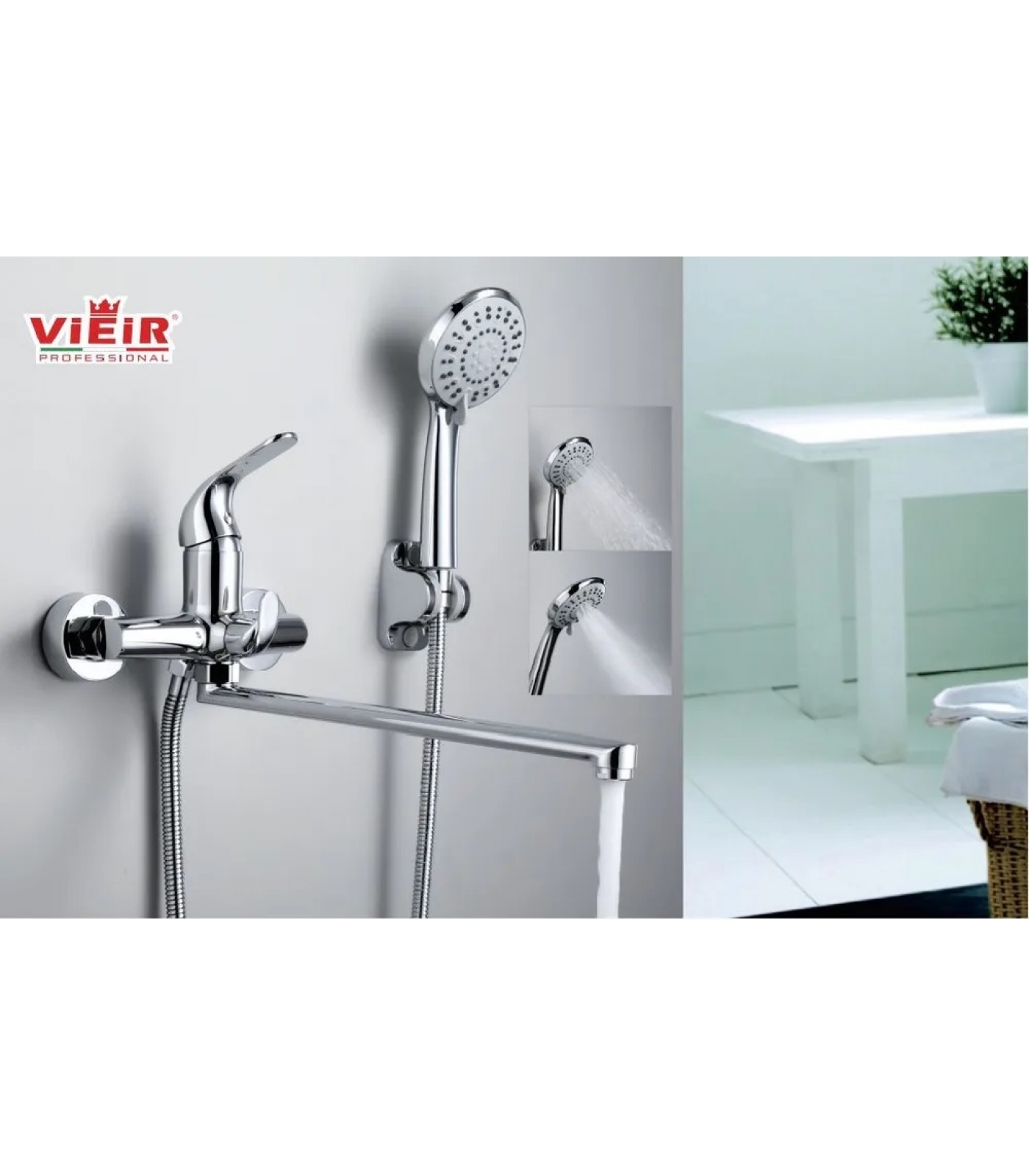 Смеситель для ванны VIEIR V033541, однорычажный, длинный излив, ручной душ