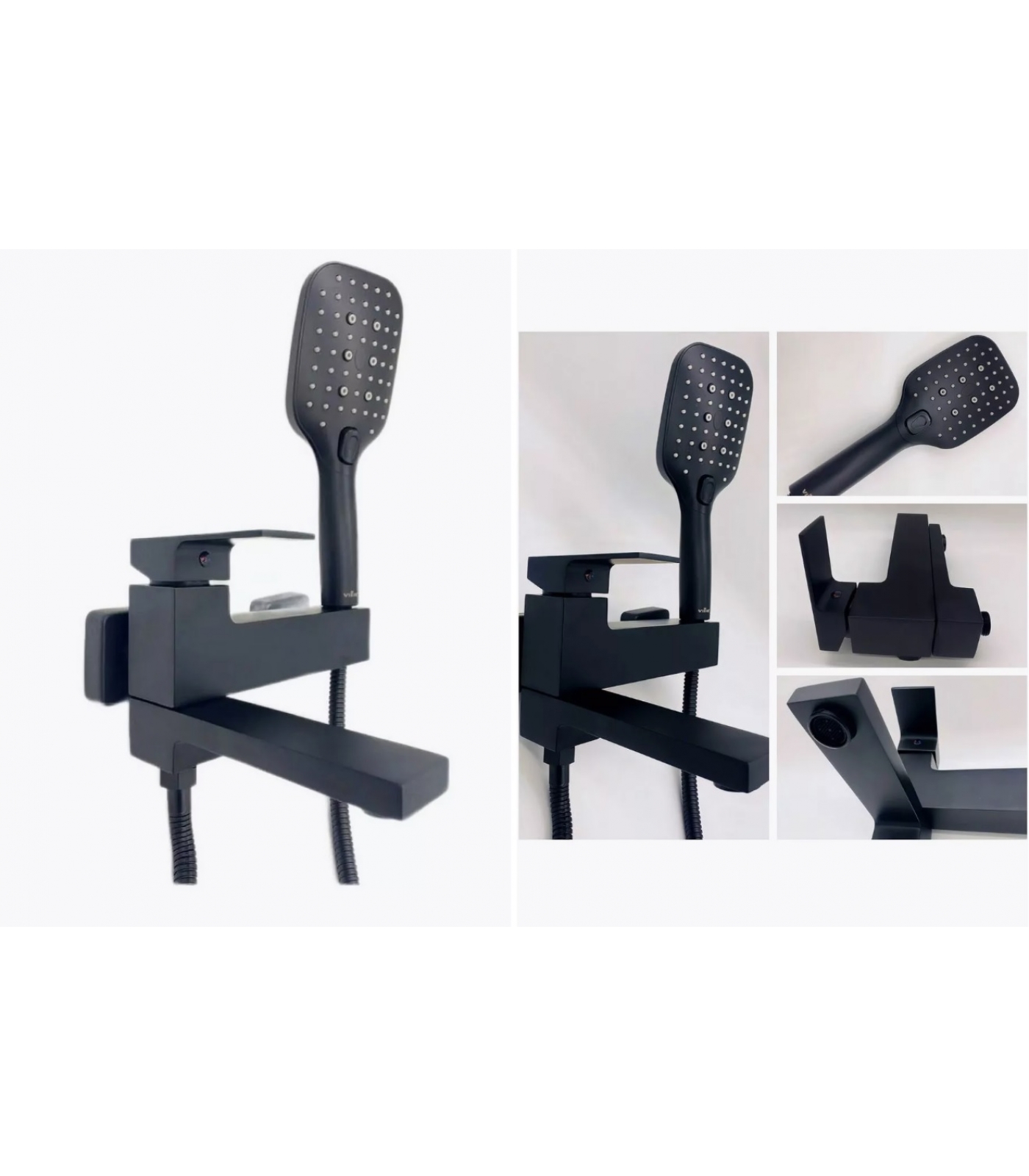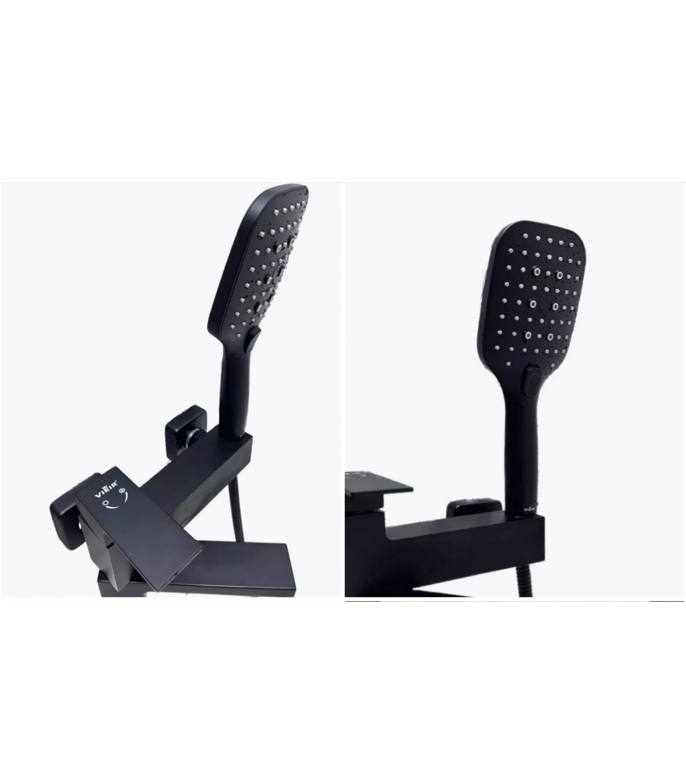 Смеситель для ванны VIEIR V393531C, однорычажный, короткий поворотный излив, ручной душ, черный