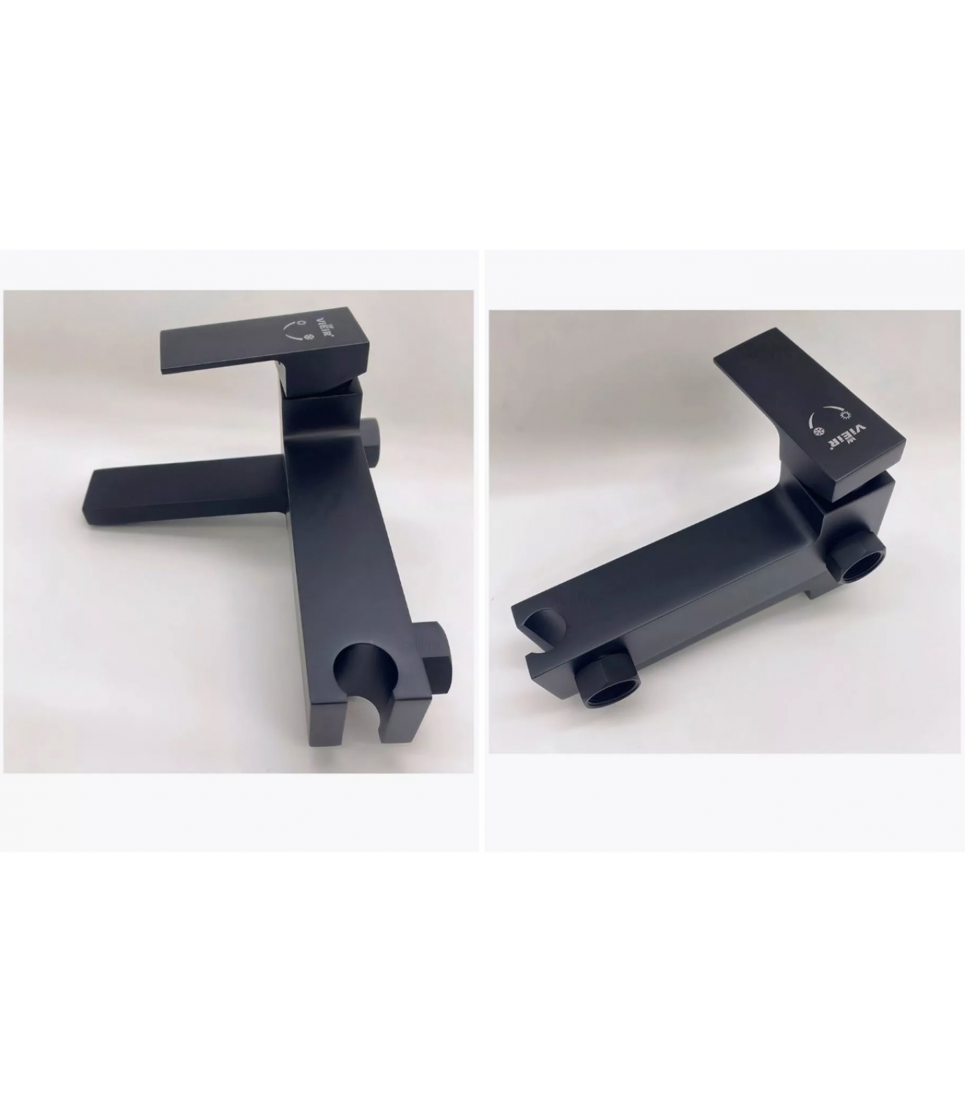 Смеситель для ванны VIEIR V393531C, однорычажный, короткий поворотный излив, ручной душ, черный - это один из вариантов однорычажного смесителя с коротким поворотным изливом и ручным душем. Он выполнен в черном цвете, что придает ему современный и стильный вид.