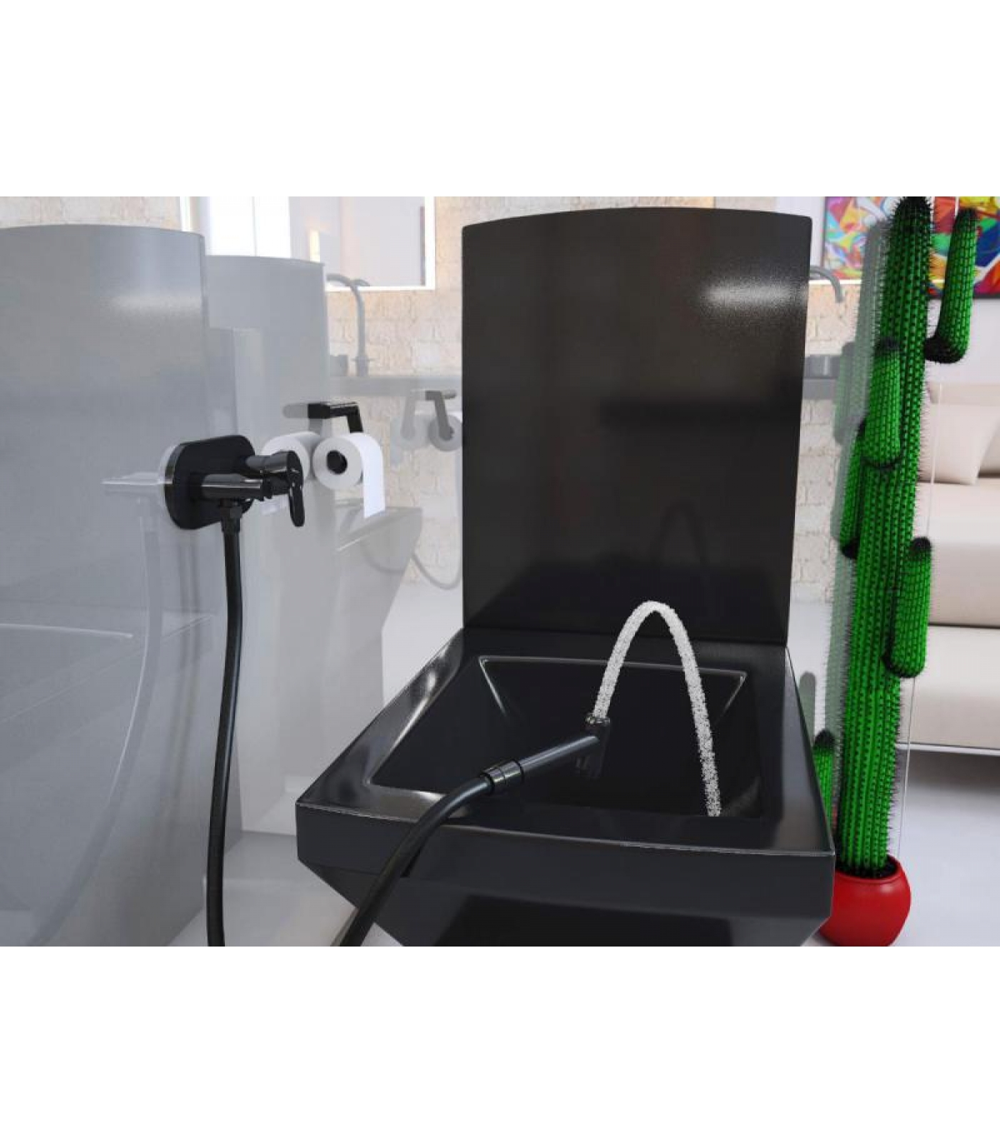 Корпус-моноблок смесителя 35 мм встраиваемого арт.BD-1535K-Black, панель двойная декоративная RoundLine арт.PD-15R-Black, подключение душевого шланга арт.WS-08-Black, рукоять управления арт.HD-83-Black, гигиенический набор арт.Set-84 (шланг силиконовый 120 см и лейка для биде арт.BM-04-Black).