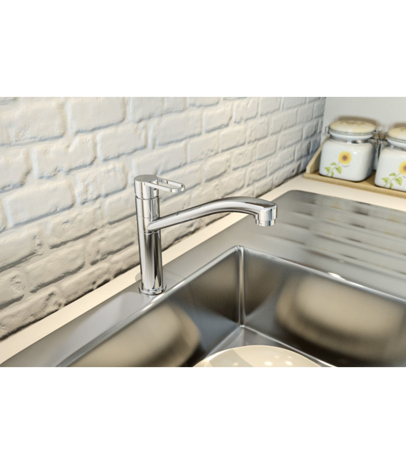 Смеситель Elghansa ECOFLOW ALPHA 5650207 для кухни однорычажный, цвет - хром - это эргономичный и функциональный инструмент для мытья посуды, овощей и фруктов.
