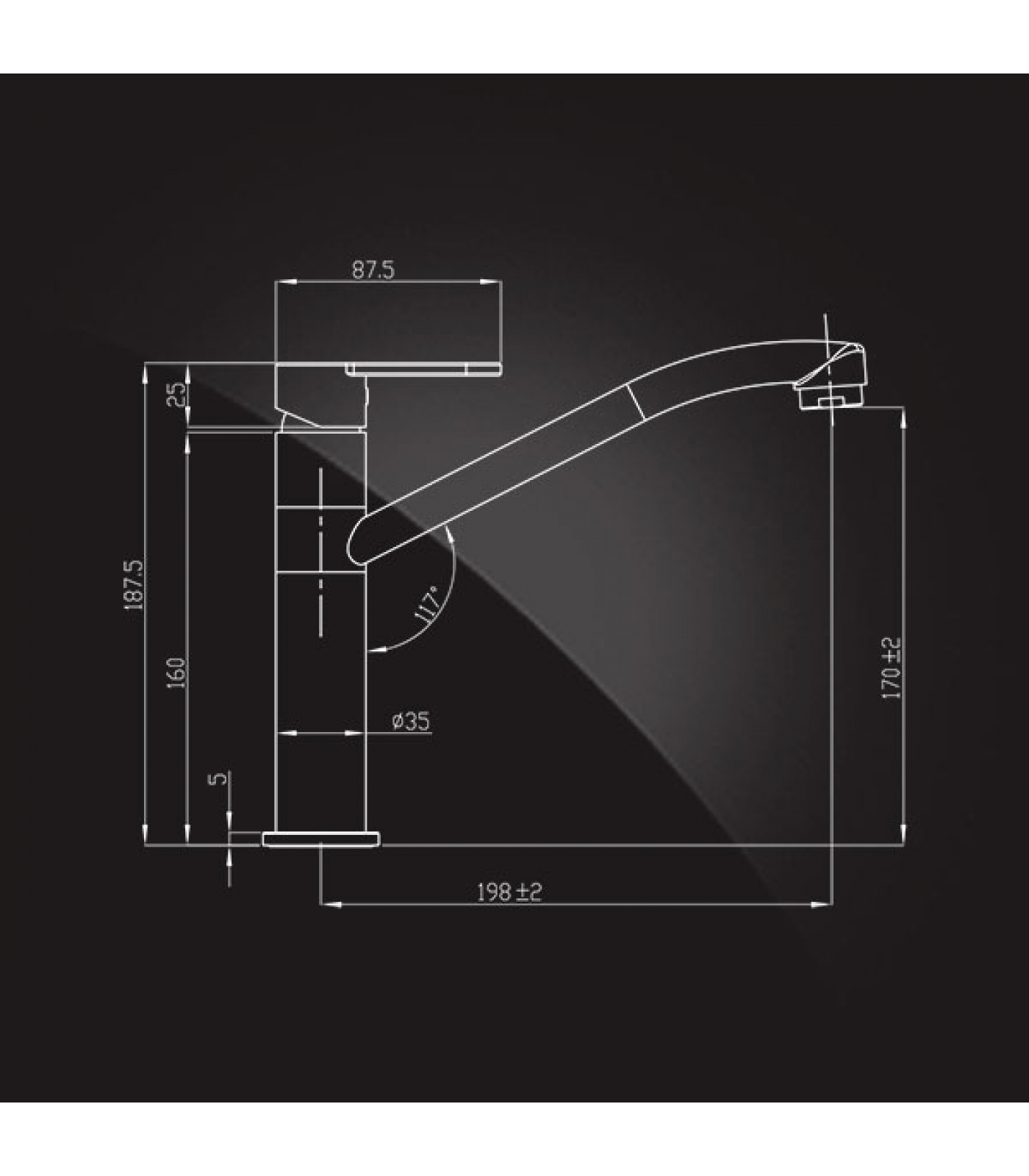 Изготовлен из высококачественной латуни, что гарантирует долговечность и надежность. Однорычажная система управления обеспечивает быстрое и удобное регулирование температуры и напора воды, а также экономит время и энергию.