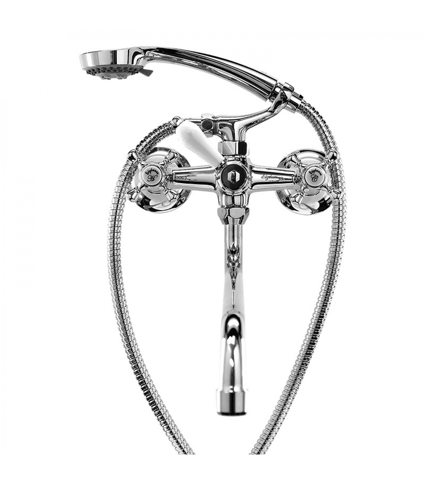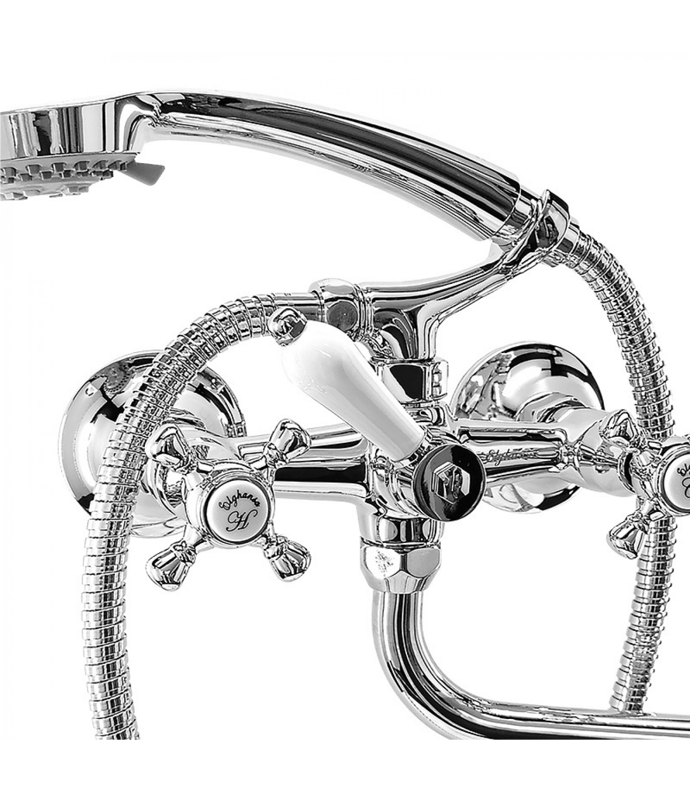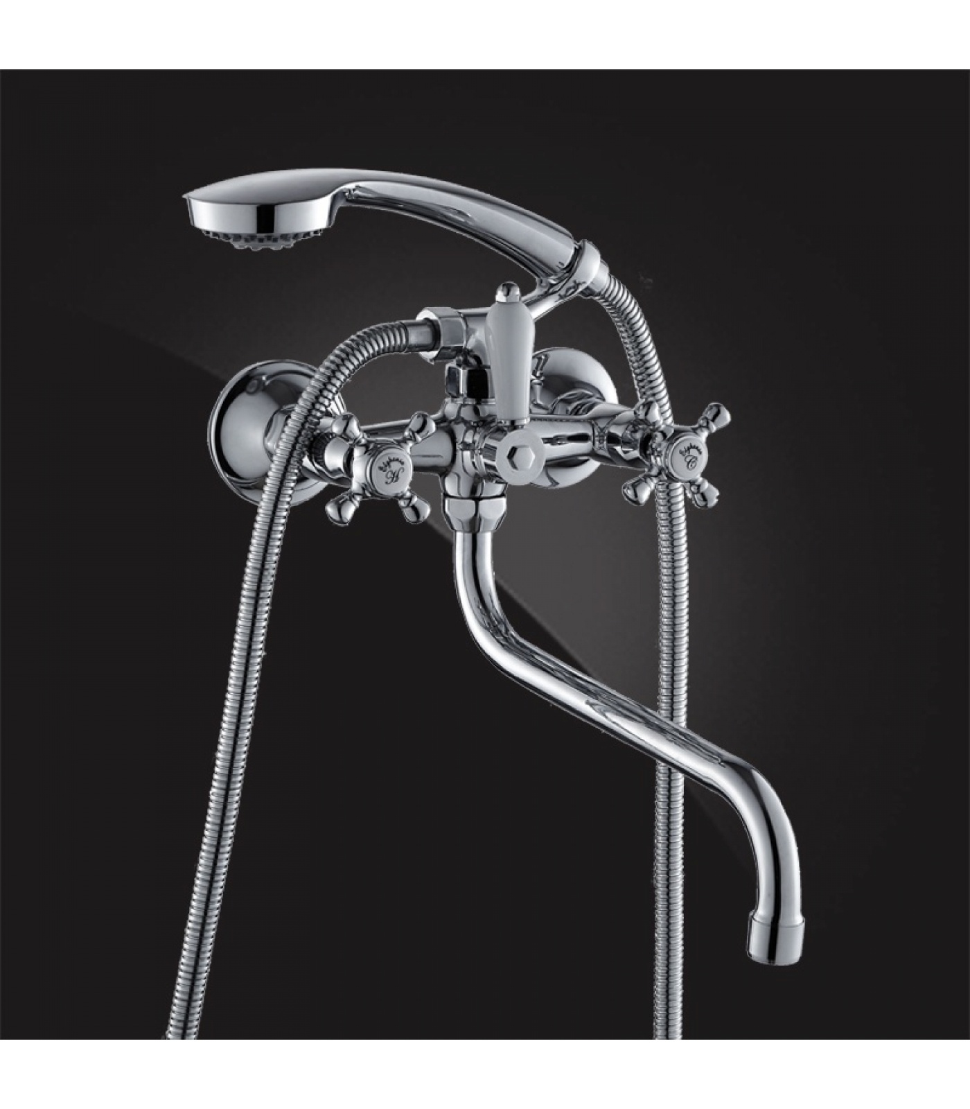 Смеситель для ванны Elghansa KIMBERLI 2730063 двухвентильный, длинный излив, душевой комплект