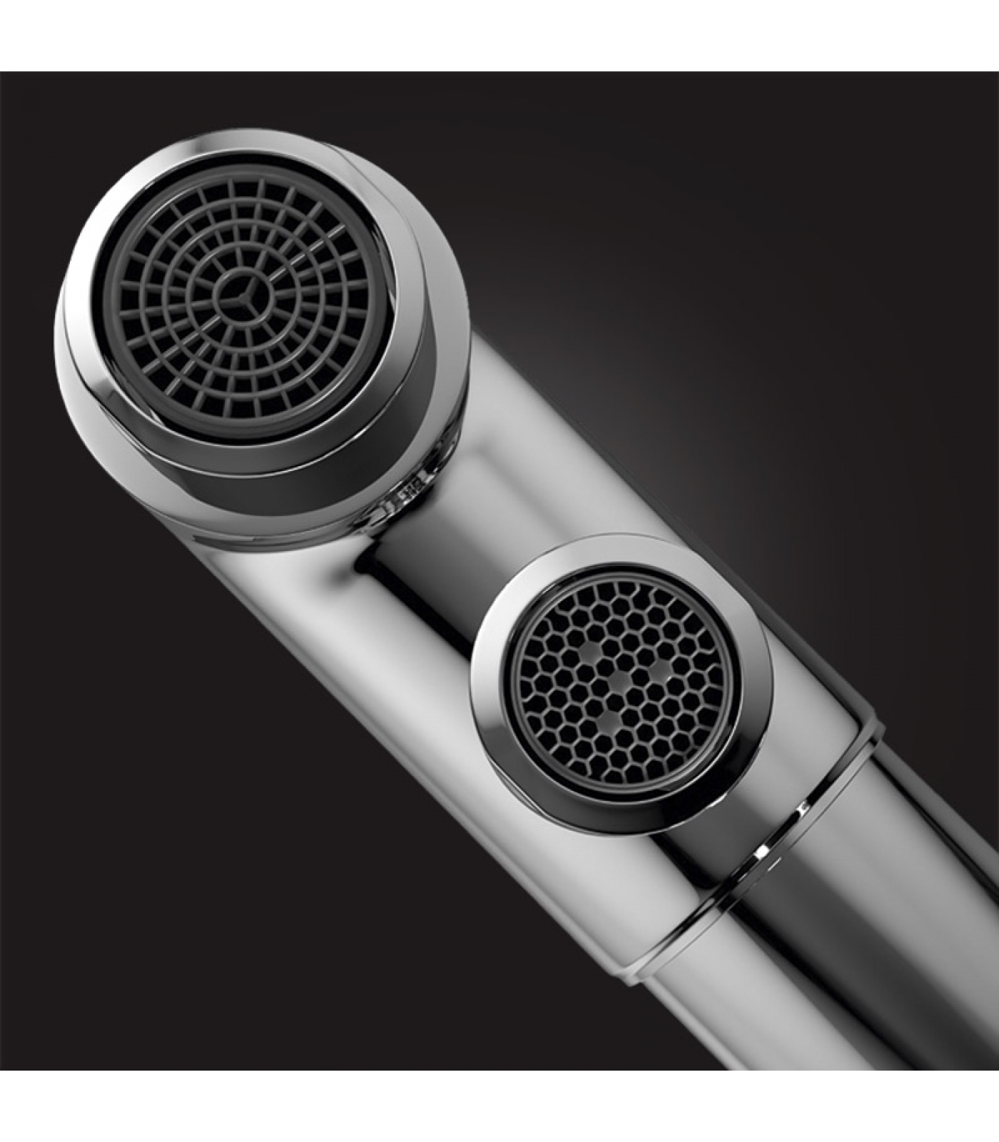 Кухонный смеситель снабжен аэратором с технологией ANTICALC, обеспечивающий мягкую и экономичную струю воды. Керамический картридж в системе рычажного управления смесителя для кухни повышает надежность за счет отсутствия резиновых прокладок. Качественно обработанные пластины картриджа повышают точность регулировки температуры воды и мощности напора, также предотвращают появление протечек.