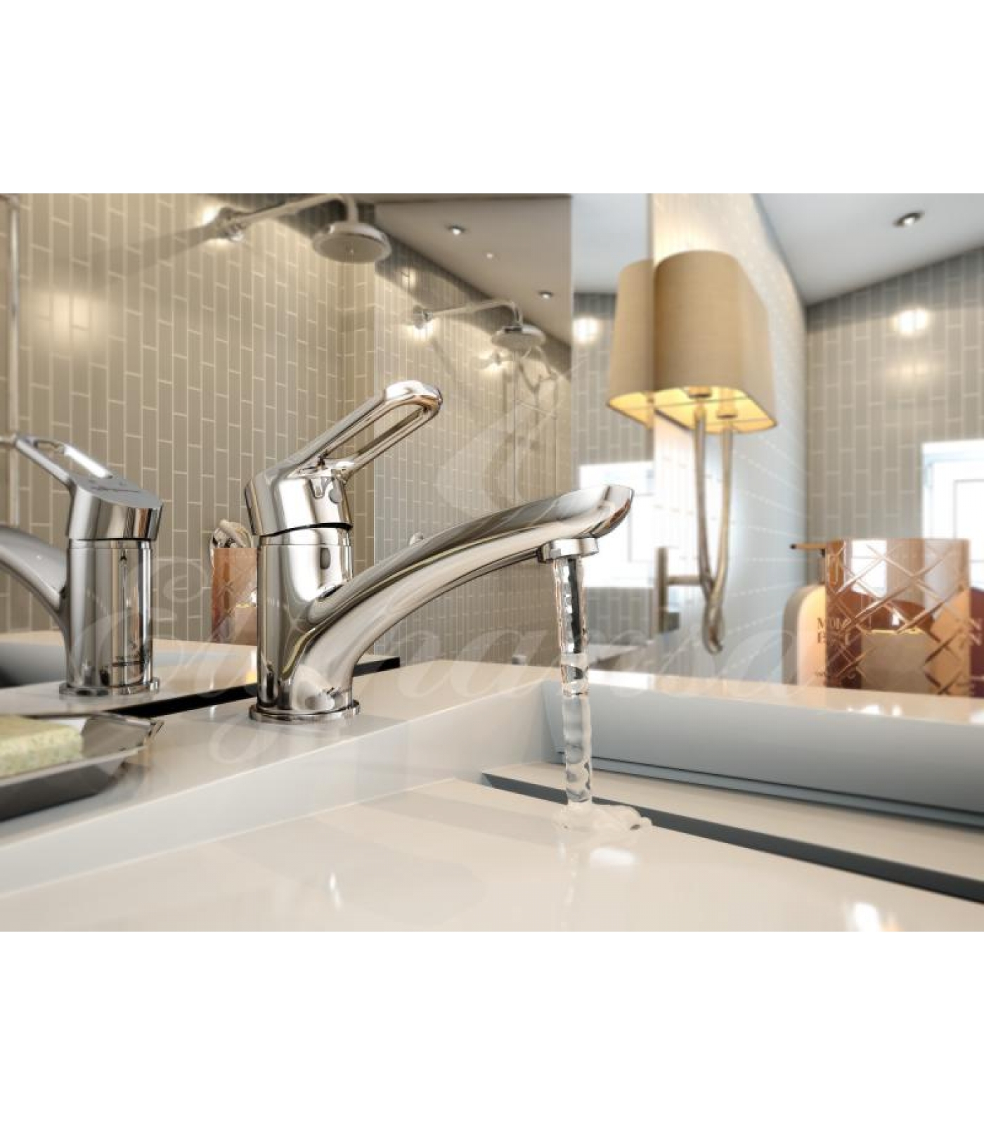 В излив встроен специальный аэратор «Anticalc», который улучшает качество струи и экономит расход воды примерно в 2 раза.