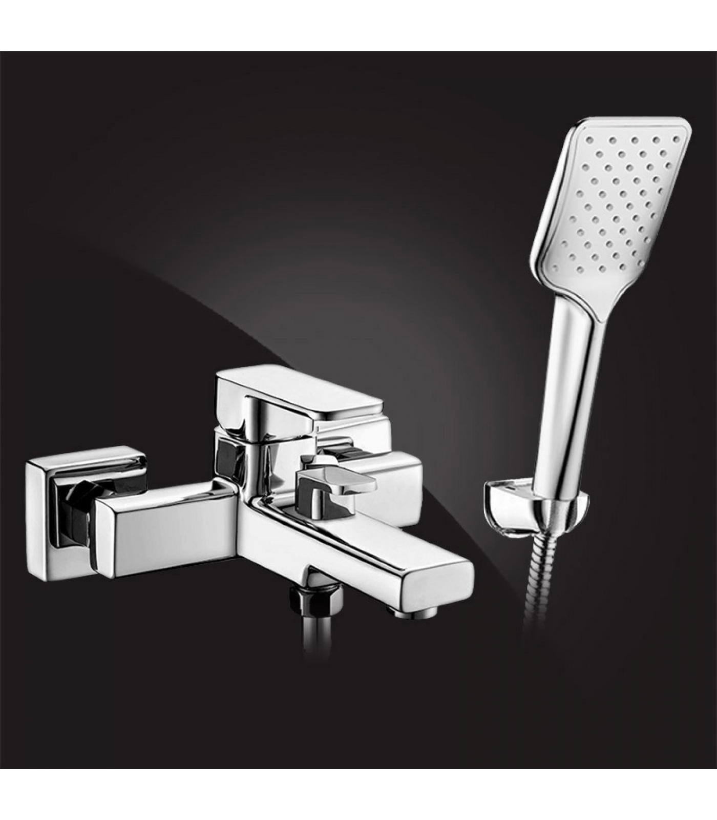 Комплектация: Смеситель, настенный кронштейн, пластиковая душевая лейка, душевой шланг 150 см, эксцентрики, набор декоративных колпаков.