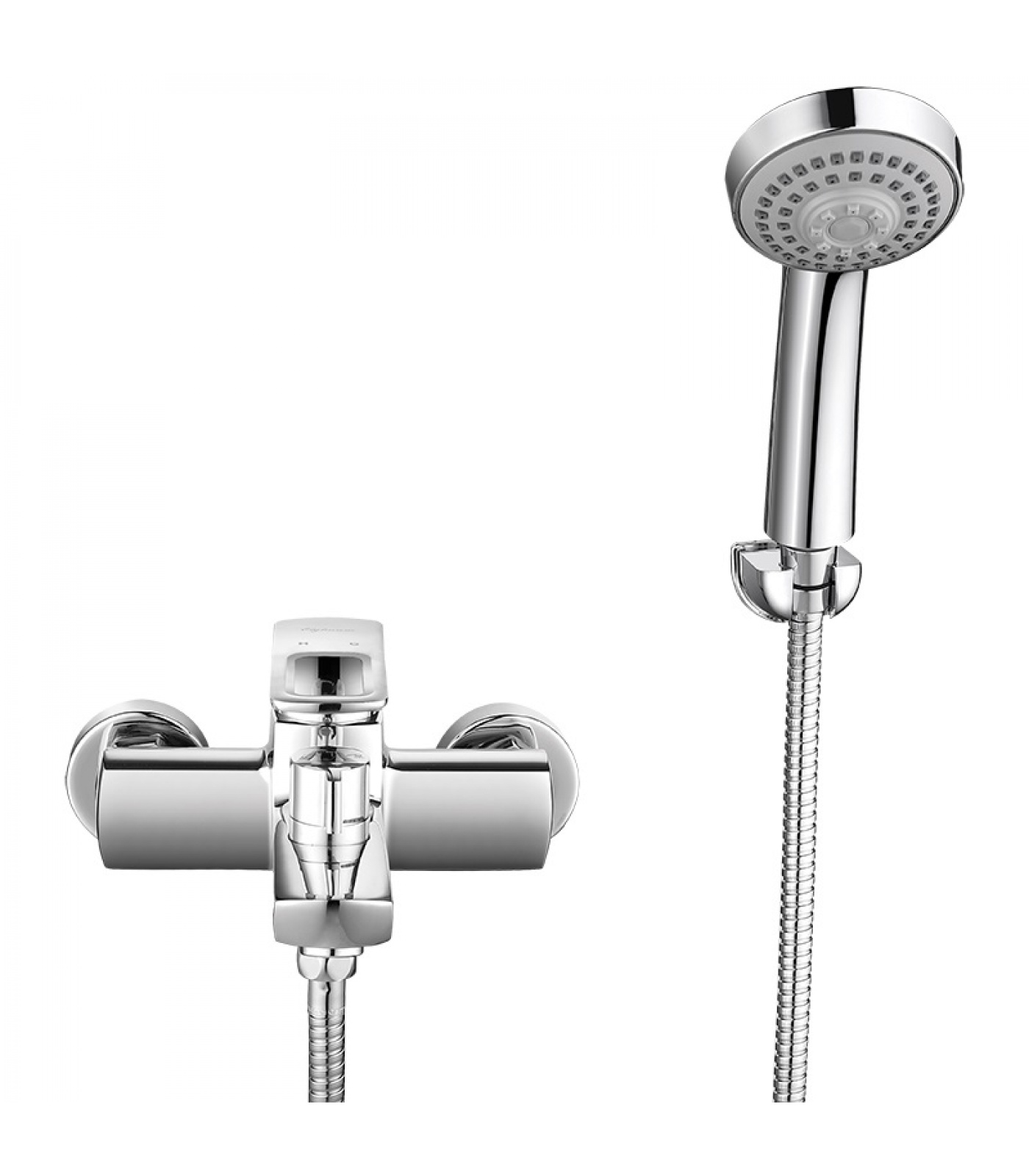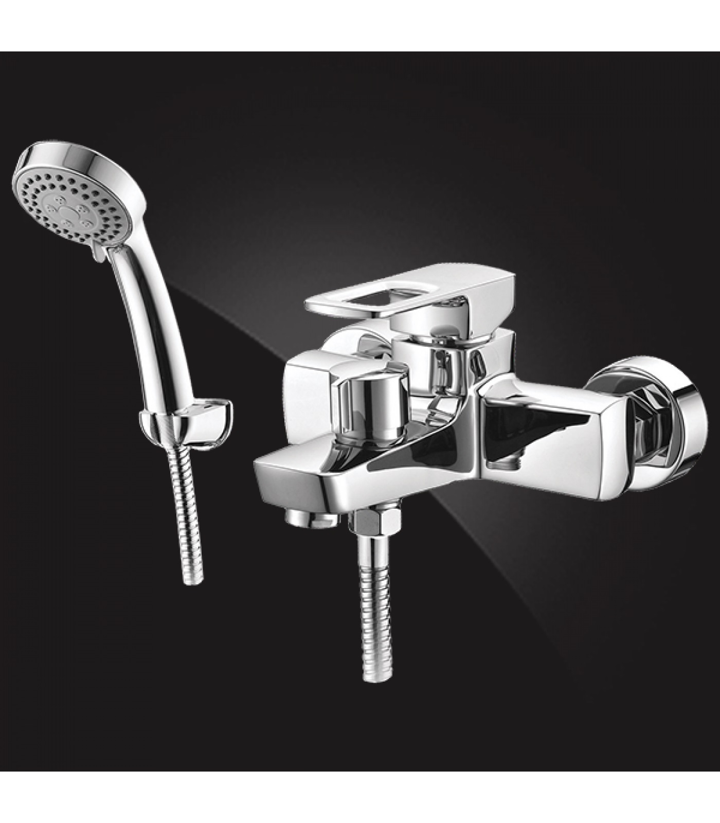 Смеситель с керамическим переключателем, лейка пластиковая душевая, настенный кронштейн, металлический душевой шланг 150 см, эксцентрики, набор декоративных колпаков.