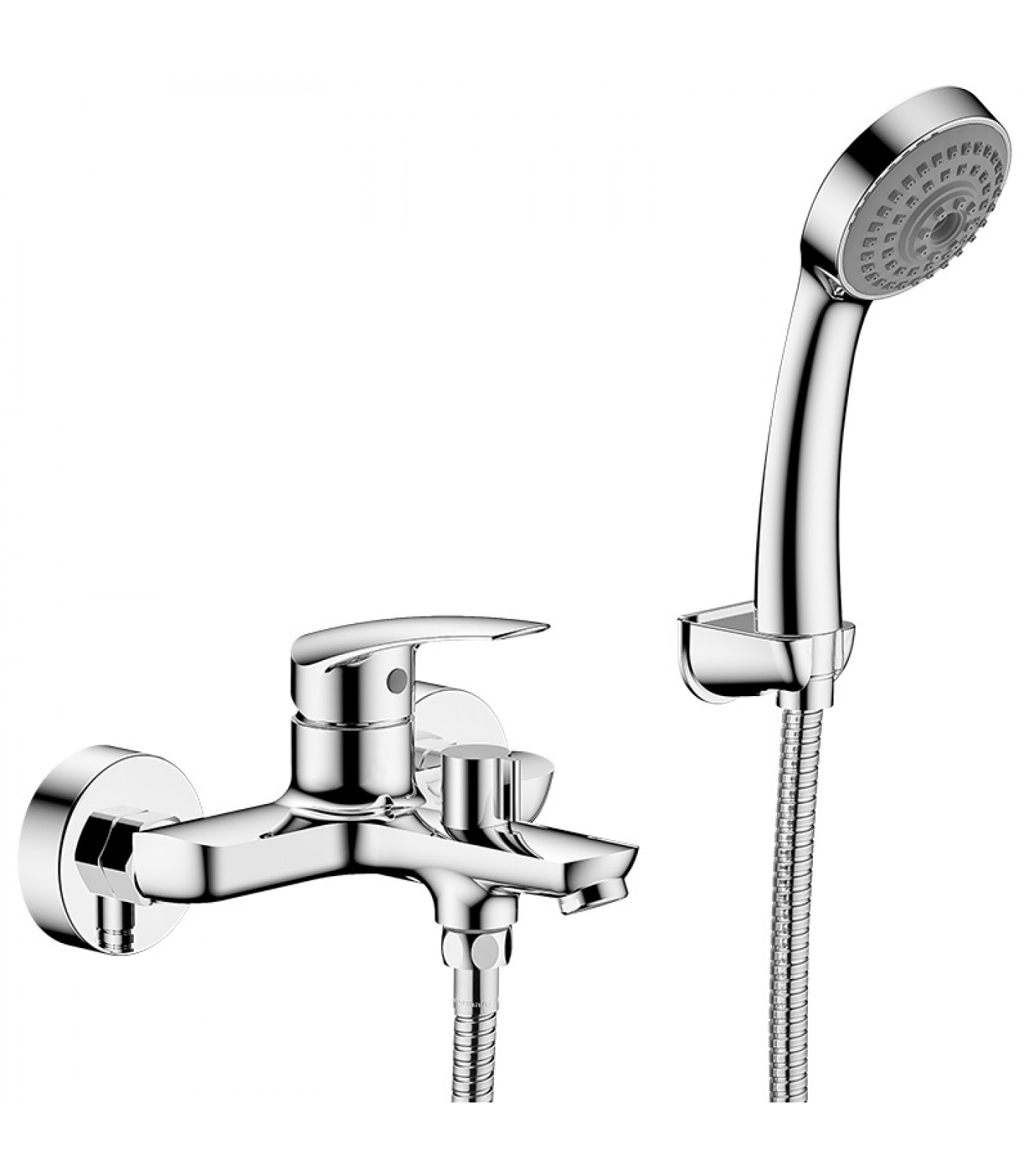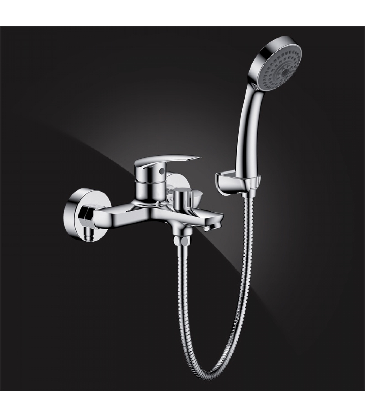 В комплект входит настенное крепление для душевого шланга, что позволяет установить его на удобную высоту.