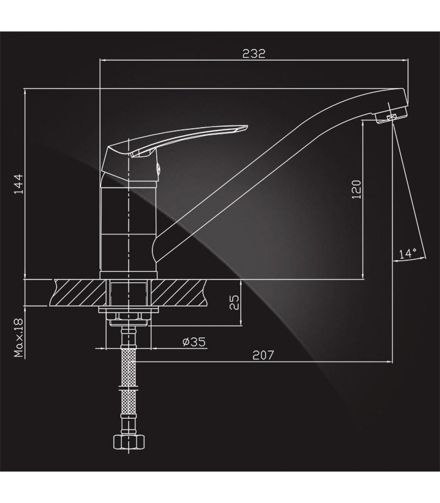 Излив однорычажного смесителя для кухни оснащён специальным аэратором «Anticalc», который улучшает качество струи и сокращает расход воды примерно в 2 раза.