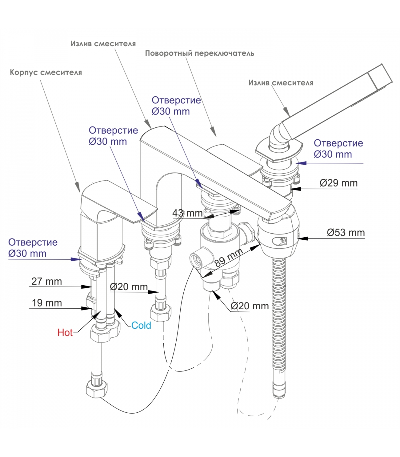 Керамический картридж 35мм, Sedal (Испания), Встроенный силиконовый аэратор Neoperl CASCADE (Германия) для равномерного распределения струи, Керамический поворотный переключатель