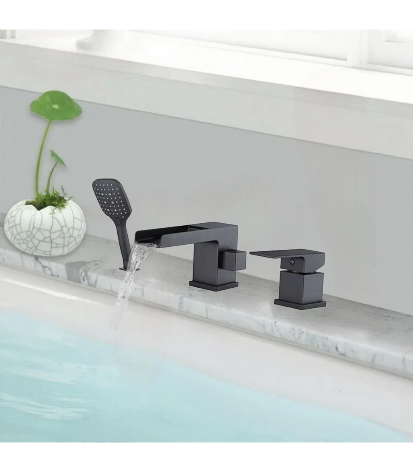 Смеситель на борт ванны VIEIR V393532C однорычажный, средний излив, выдвижная лейка, черный