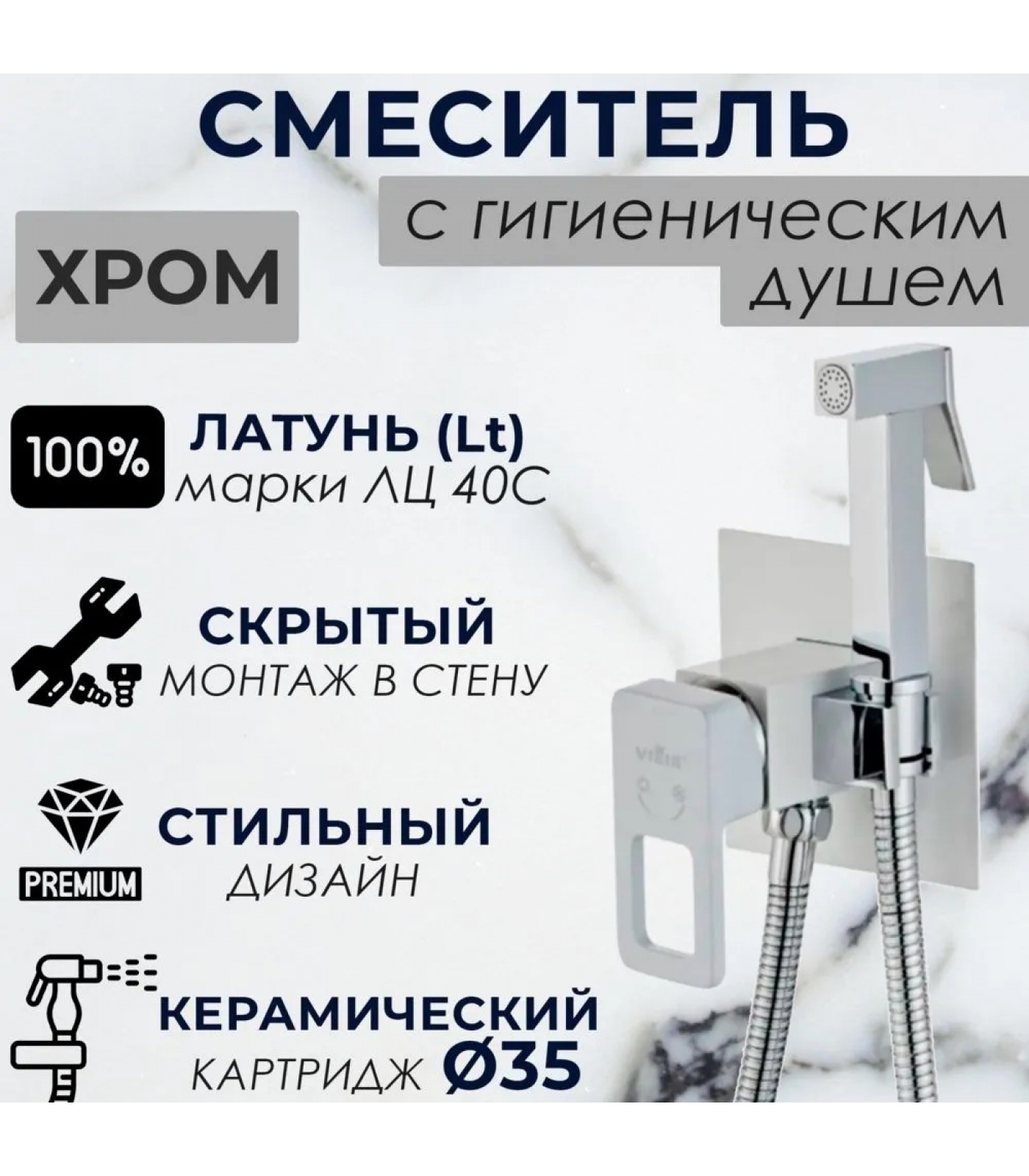 Смеситель с гигиеническим душем VIEIR V353551, встраиваемый, однорычажный, хром
