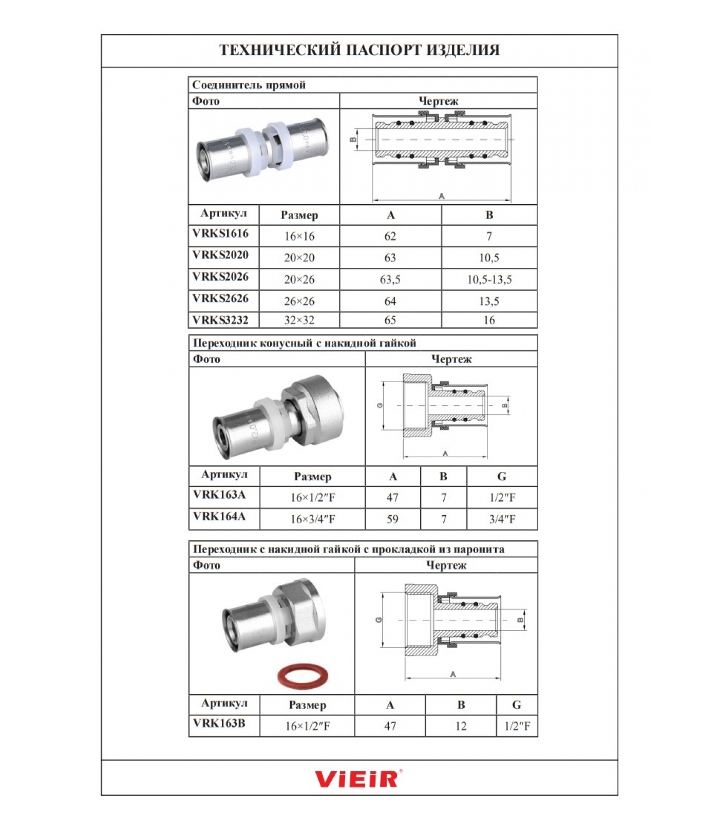 Латунные обжимные пресс-фитинги ViEiR предназначены для соединения многослойных металлопластиковых труб (PE-X/AL/PE-X, PE/AL/PE,PE-Х/AL/PE,PE/AL/PE-RT и т.п.)