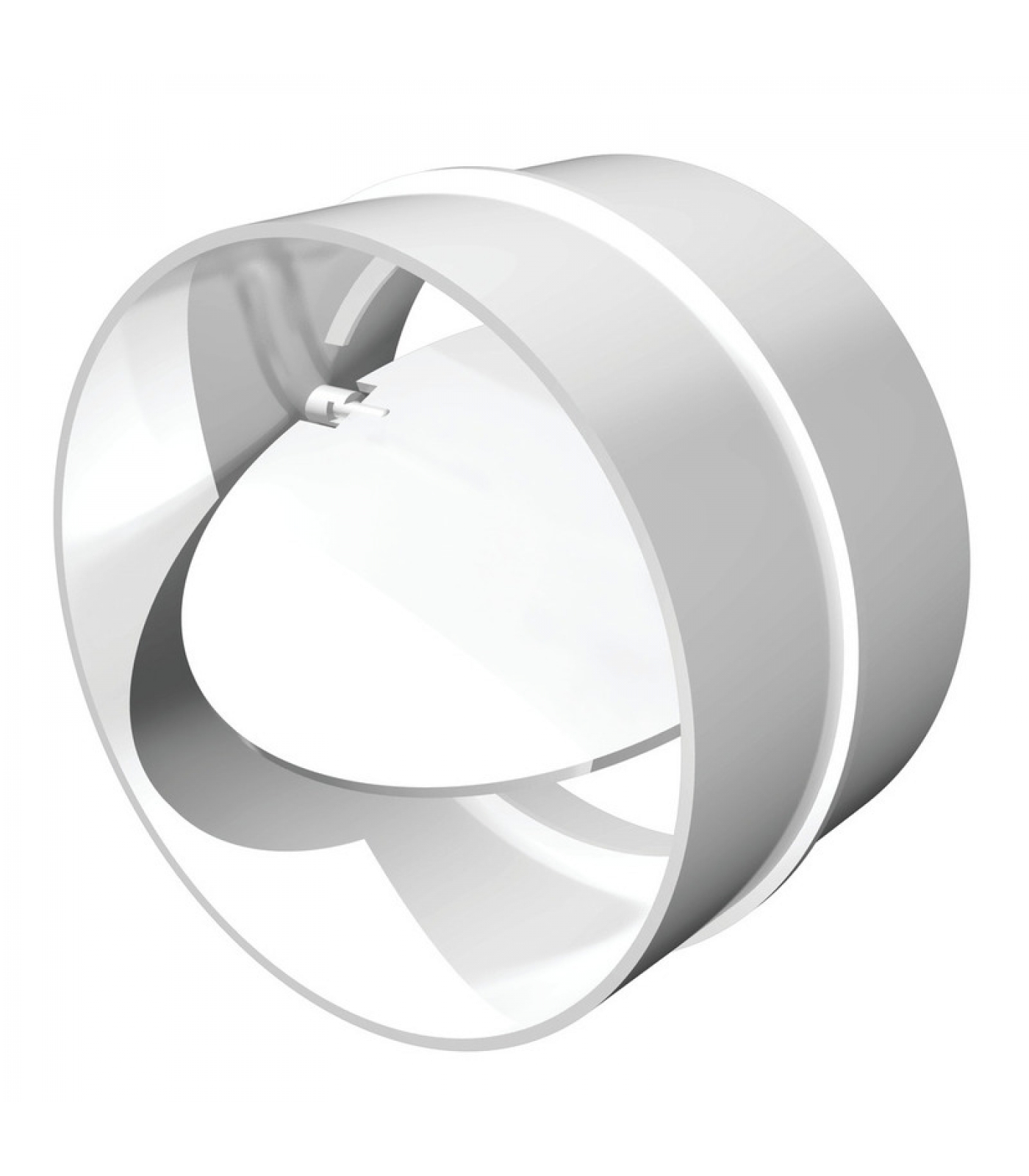Встроенный обратный клапан открывается при включении вентилятора под действием потока воздуха. При выключении вентилятора заслонка закрывает канал под воздействием силы тяжести.