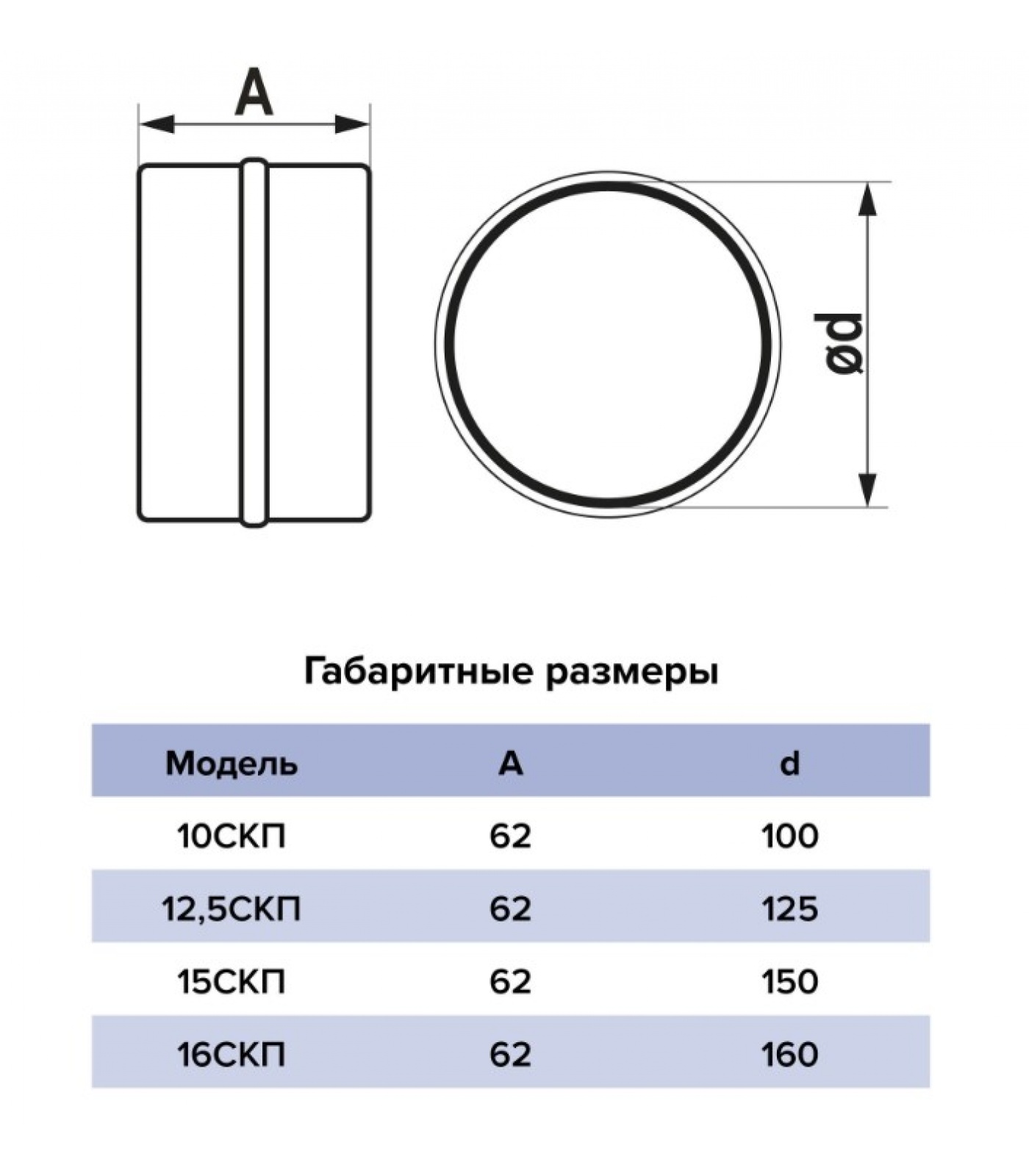 Соединители круглых каналов СКП используются для соединения воздуховодов соответствующего диаметра.