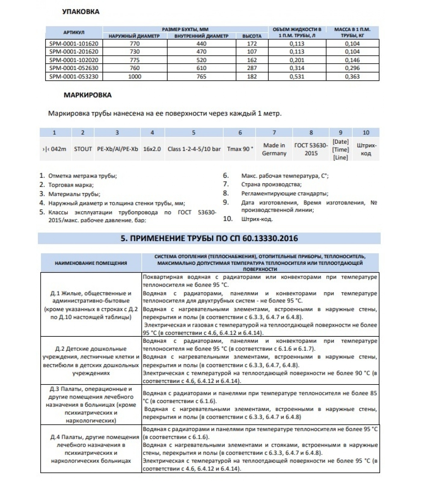 Труба STOUT из сшитого полиэтилена PE-Xb/AL/PE-Xb является универсальной и предназначена для применения в системах отопления зданий, а также холодного и горячего водоснабжения, всех классов эксплуатации согласно ГОСТ P 53630-2015.