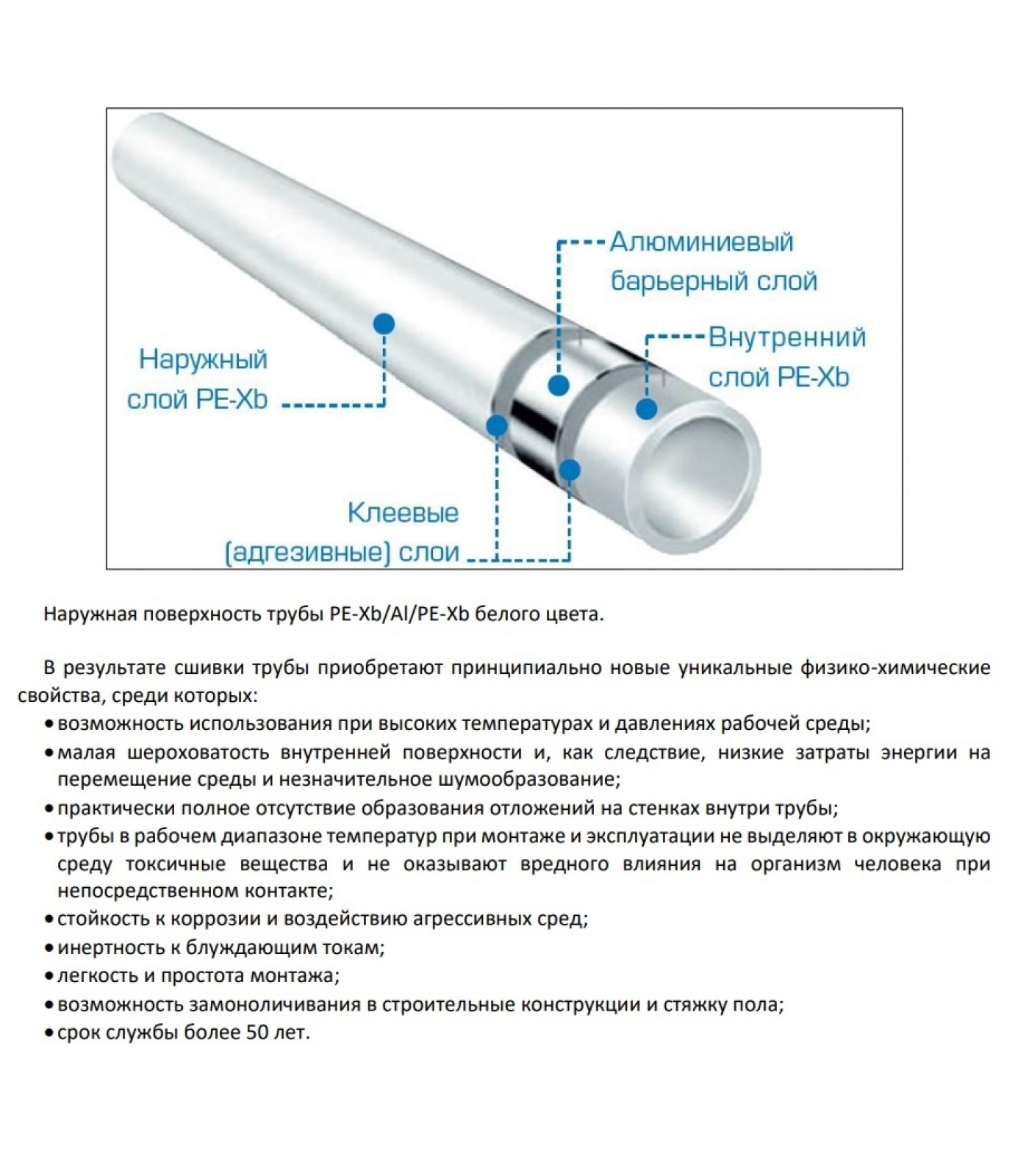 Наружная поверхность трубы PE-Xb/Al/PE-Xb белого цвета.