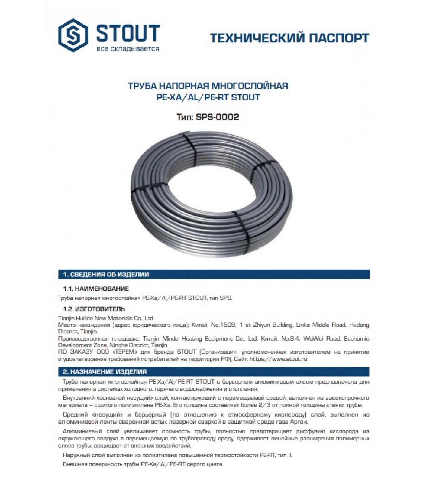 Труба напорная многослойная PE-Xa/Al/PE-RT STOUT с барьерным алюминиевым слоем предназначена для применения в системах холодного, горячего водоснабжения и отопления. Внутренний «основной несущий» слой, контактирующий с перемещаемой средой, выполнен из высокопрочного материала – сшитого полиэтилена PE-Xa. Его толщина составляет более 2/3 от полной толщины стенки трубы.