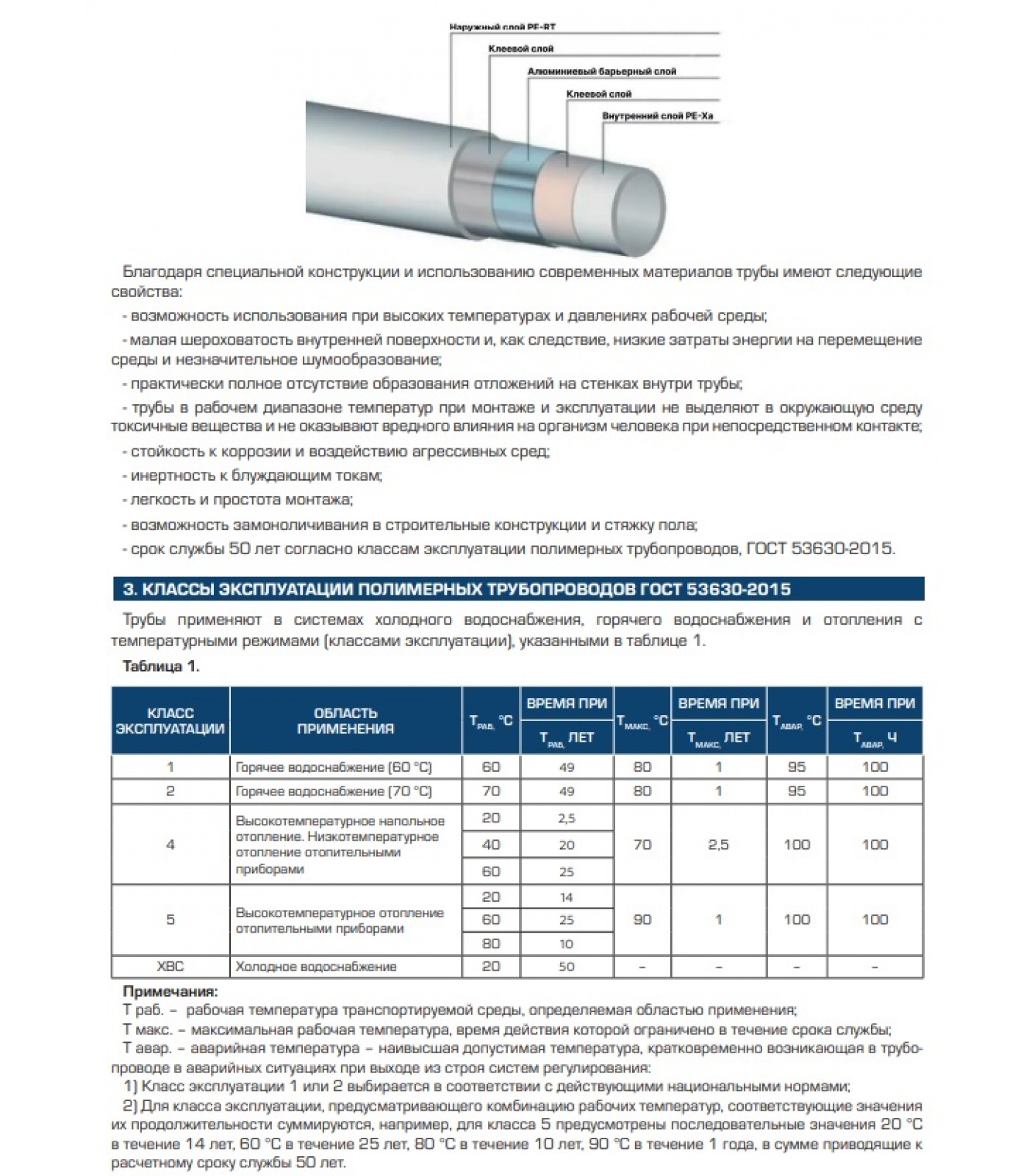 Трубы применяют в системах холодного водоснабжения, горячего водоснабжения и отопления с температурными режимами (классами эксплуатации).