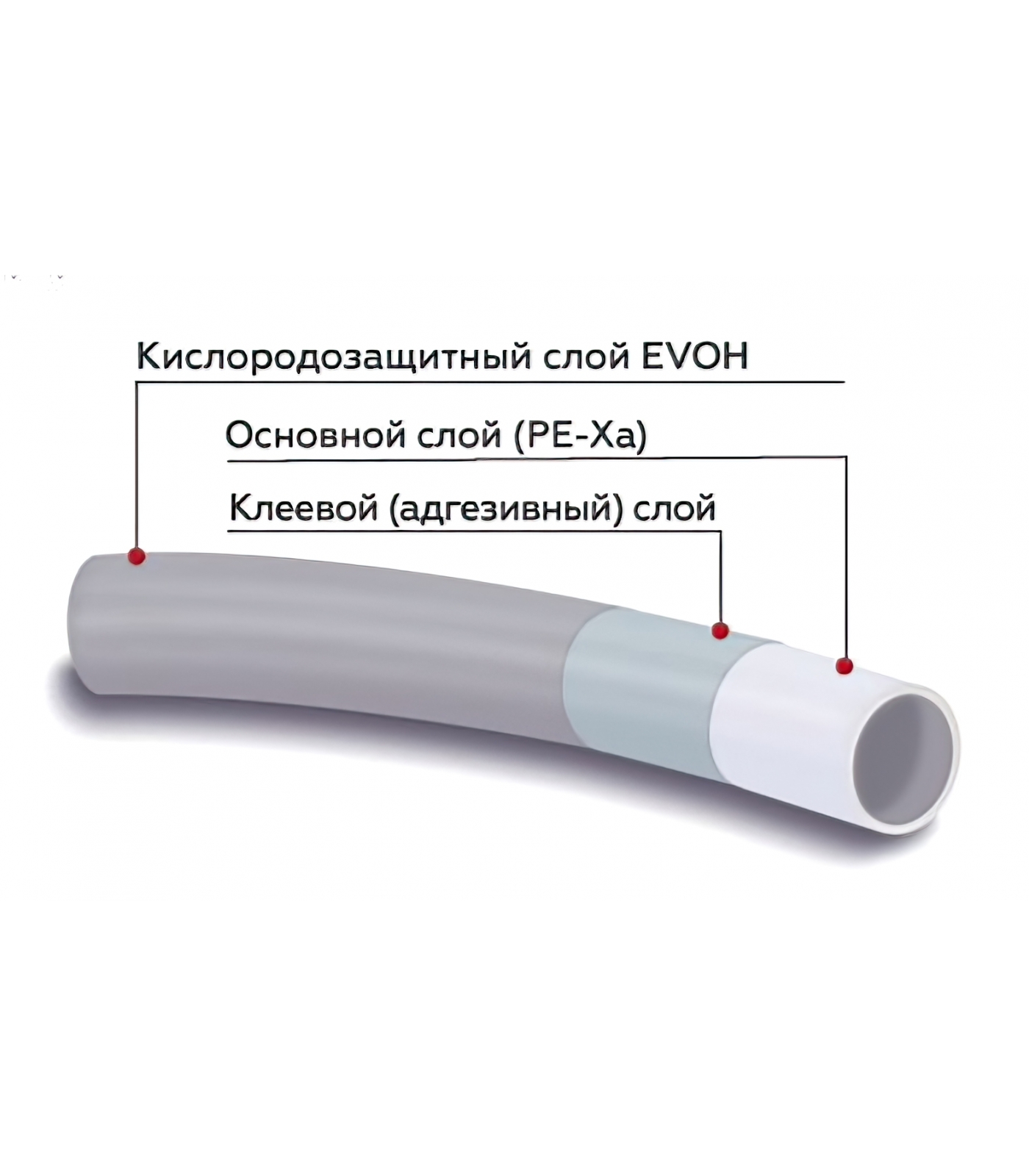 Трубы Rommer из сшитого полиэтилена PE-Xa/EVOH предназначены для применения в системах отопления, холодоснабжения и водопроводов согласно ГОСТ 32415-2013. При этом красную трубу рекомендуется использовать преимущественно в системах напольного отопления. Внутренний основной «несущий» слой трубы, контактирующий с перемещаемой средой, выполнен из сшитого полиэтилена PE-Xa. Наружный барьерный (кислородозащитный) слой представляет собой тонкую оболочку из поливинилэтилена EVOH, практически полностью предотвращающую диффузию кислорода из окружающего воздуха в перемещаемую по трубопроводу среду. Для обеспечения надежного контакта наружного и барьерного слоев между ними нанесен клеевой (адгезивный) слой.