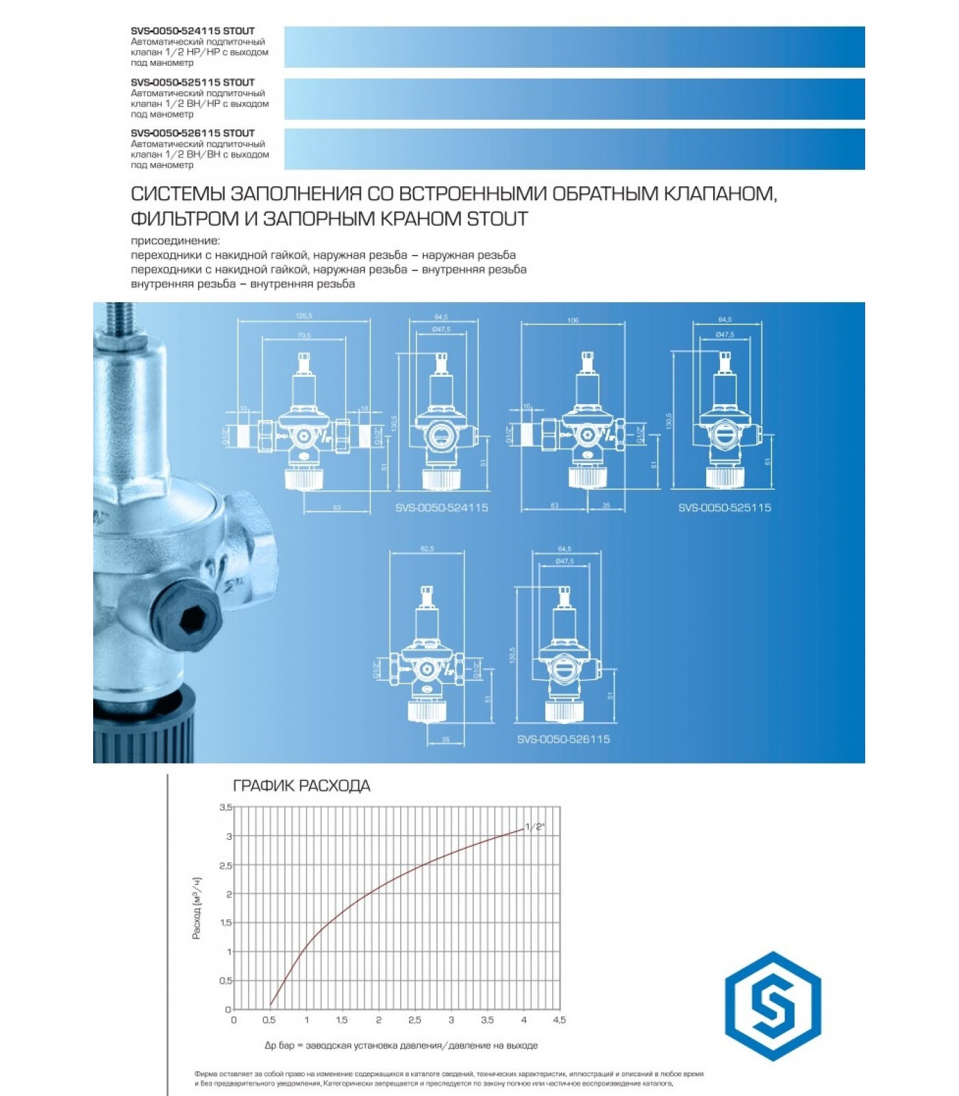 STOUT Автоматический подпиточный клапан 1/2 ВН/НР с выходом под манометр 0525.115
