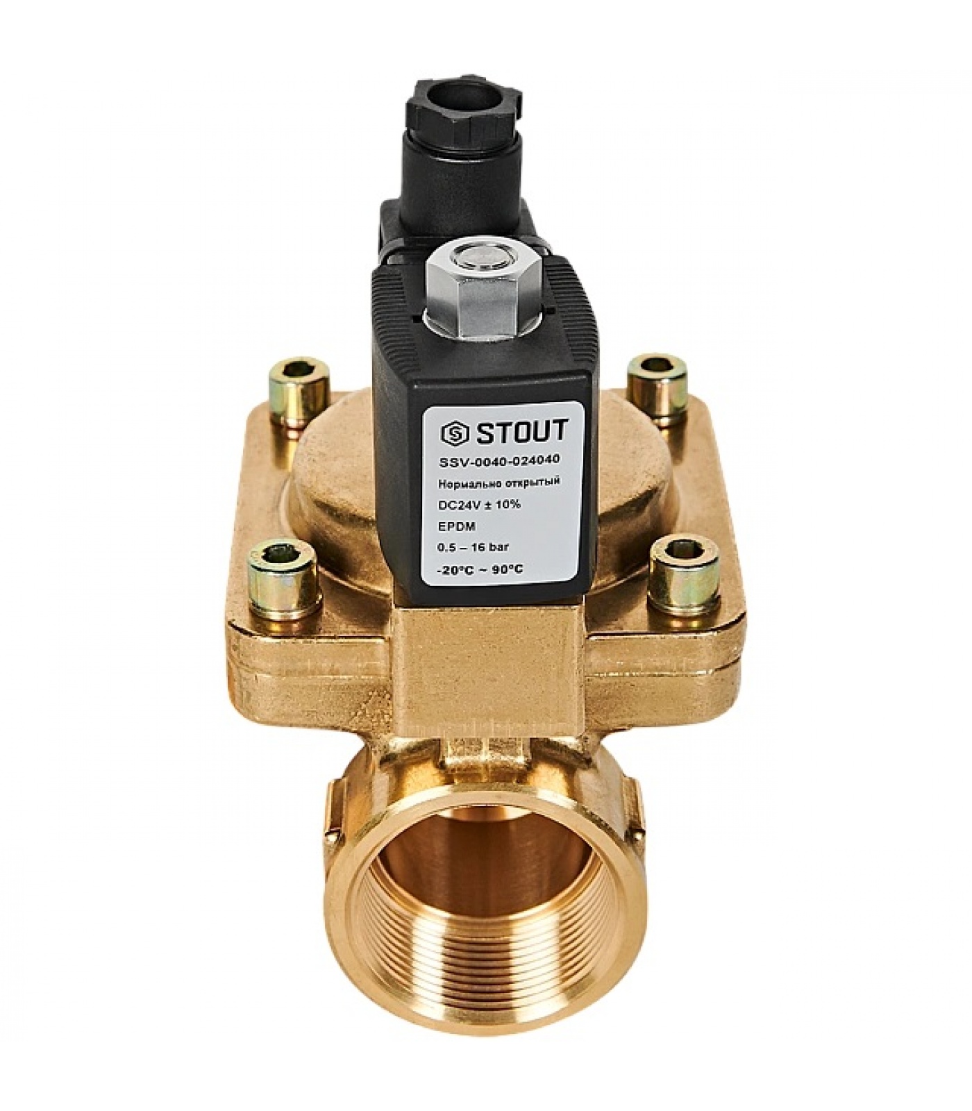 STOUT Клапан соленоидный (электромагнитный), непрямого (пилотного) действия, НО, 24В, G1 1/2, EPDM
