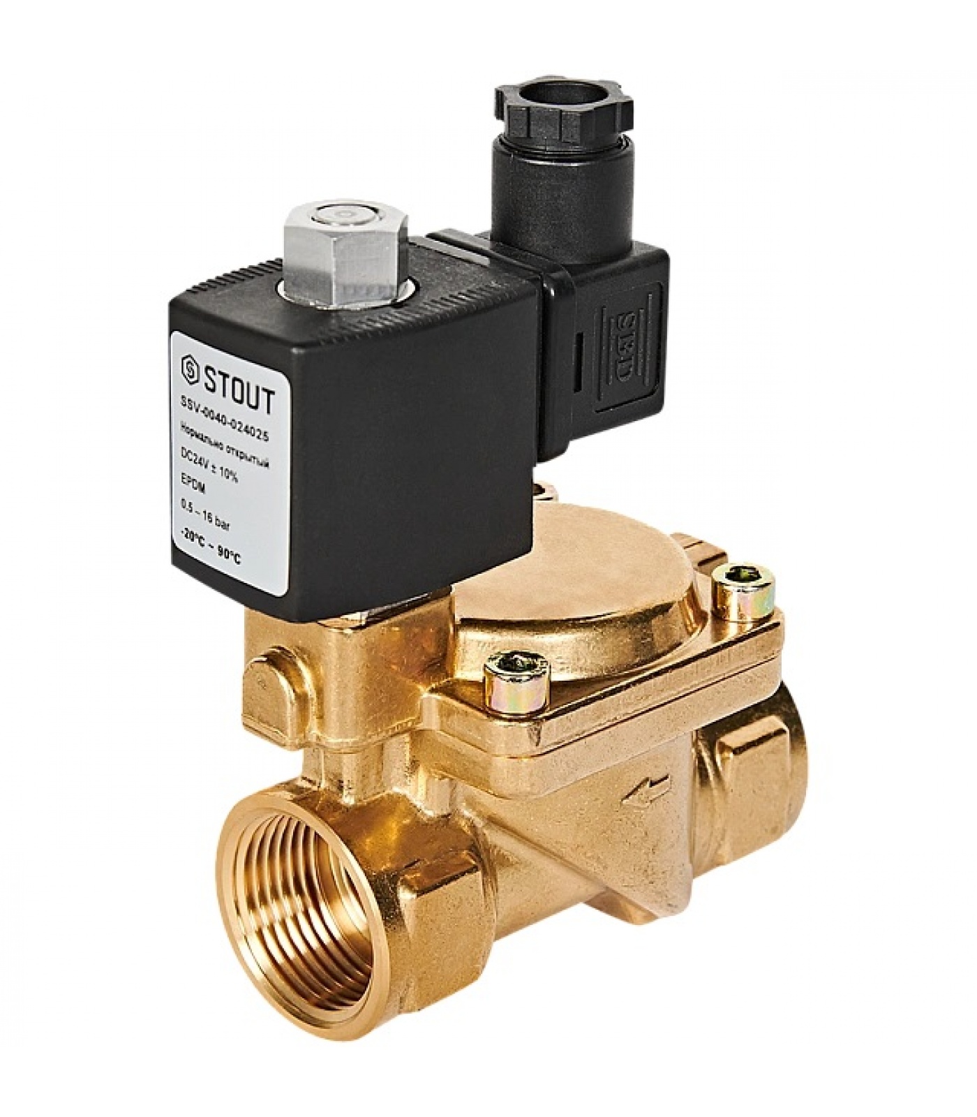 STOUT Клапан соленоидный (электромагнитный), непрямого (пилотного) действия, НО, 24В, G1, EPDM