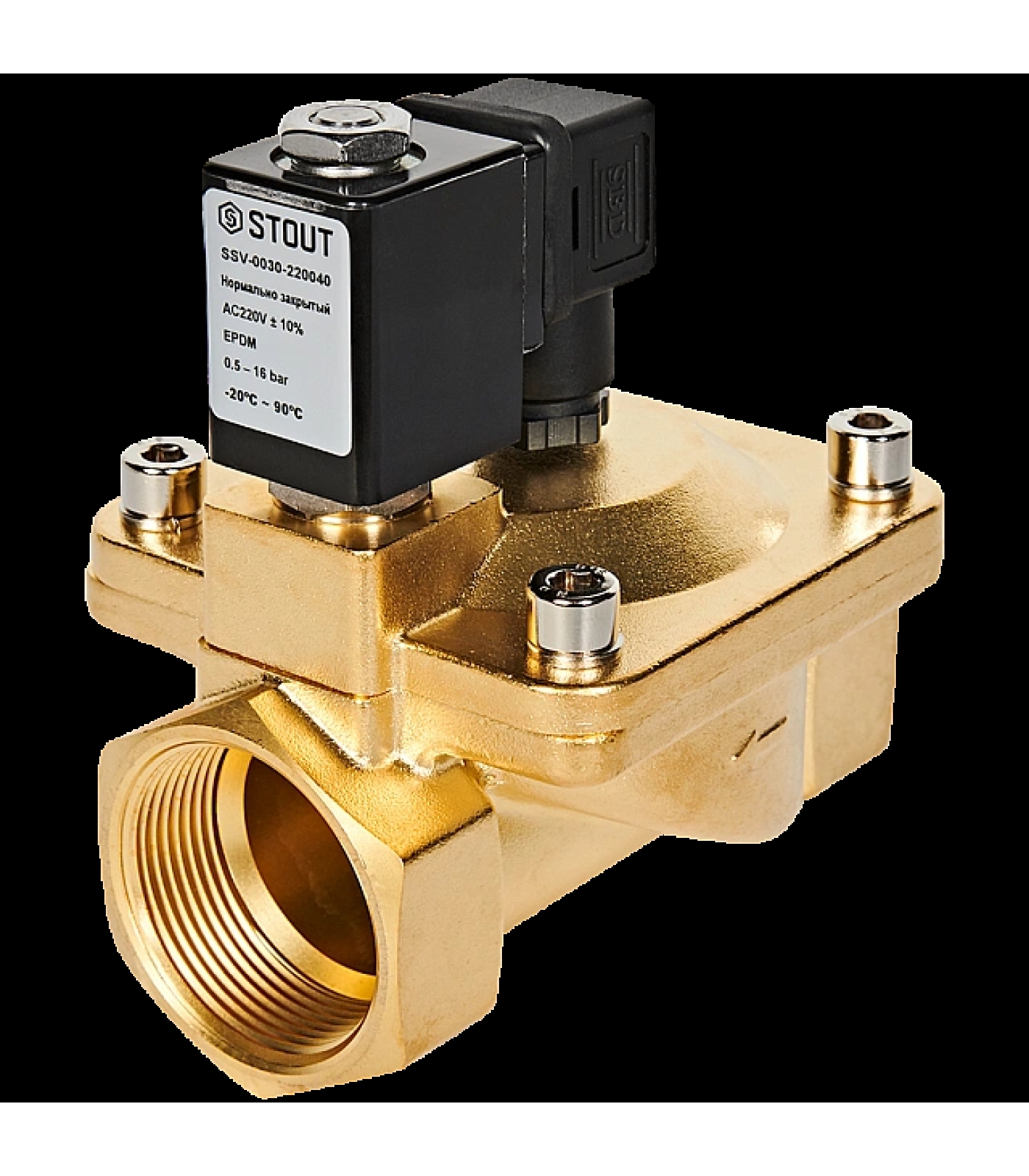 STOUT Клапан соленоидный (электромагнитный), непрямого (пилотного) действия, НЗ, 220В, G1 1/2, EPDM