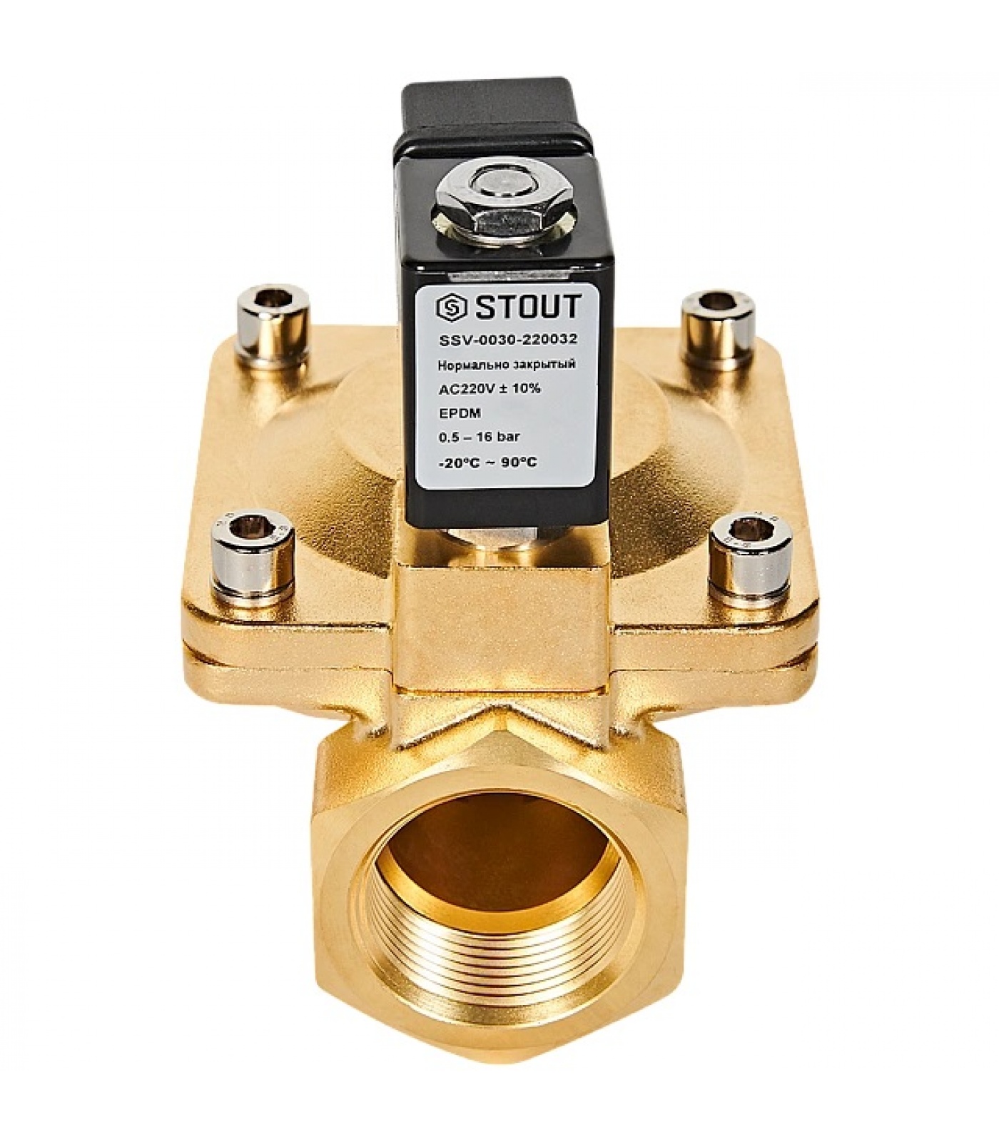 STOUT Клапан соленоидный (электромагнитный), непрямого (пилотного) действия, НЗ, 220В, G1 1/4, EPDM