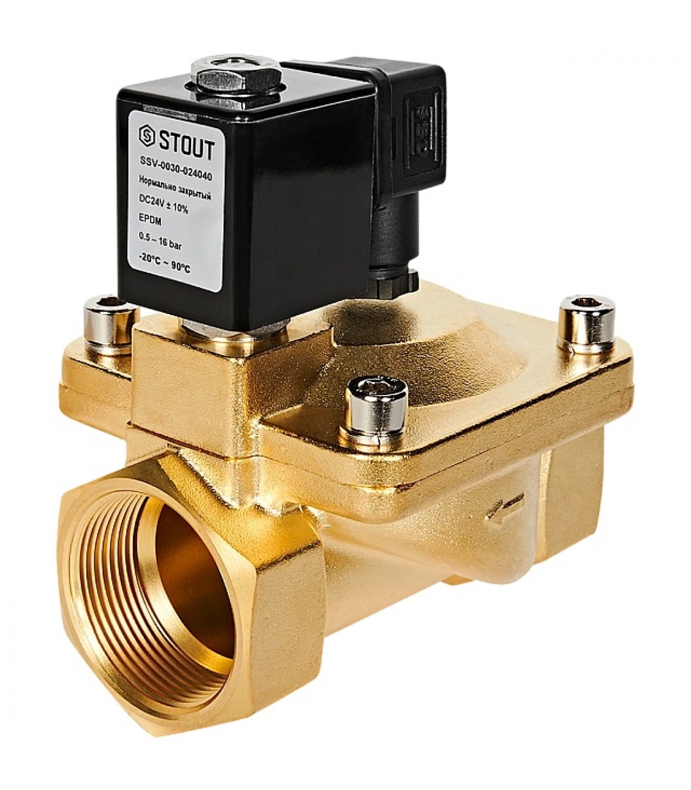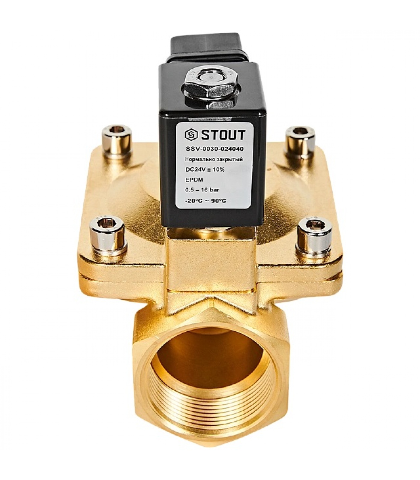 STOUT Клапан соленоидный (электромагнитный), непрямого (пилотного) действия, НЗ, 24В, G1 1/2, EPDM