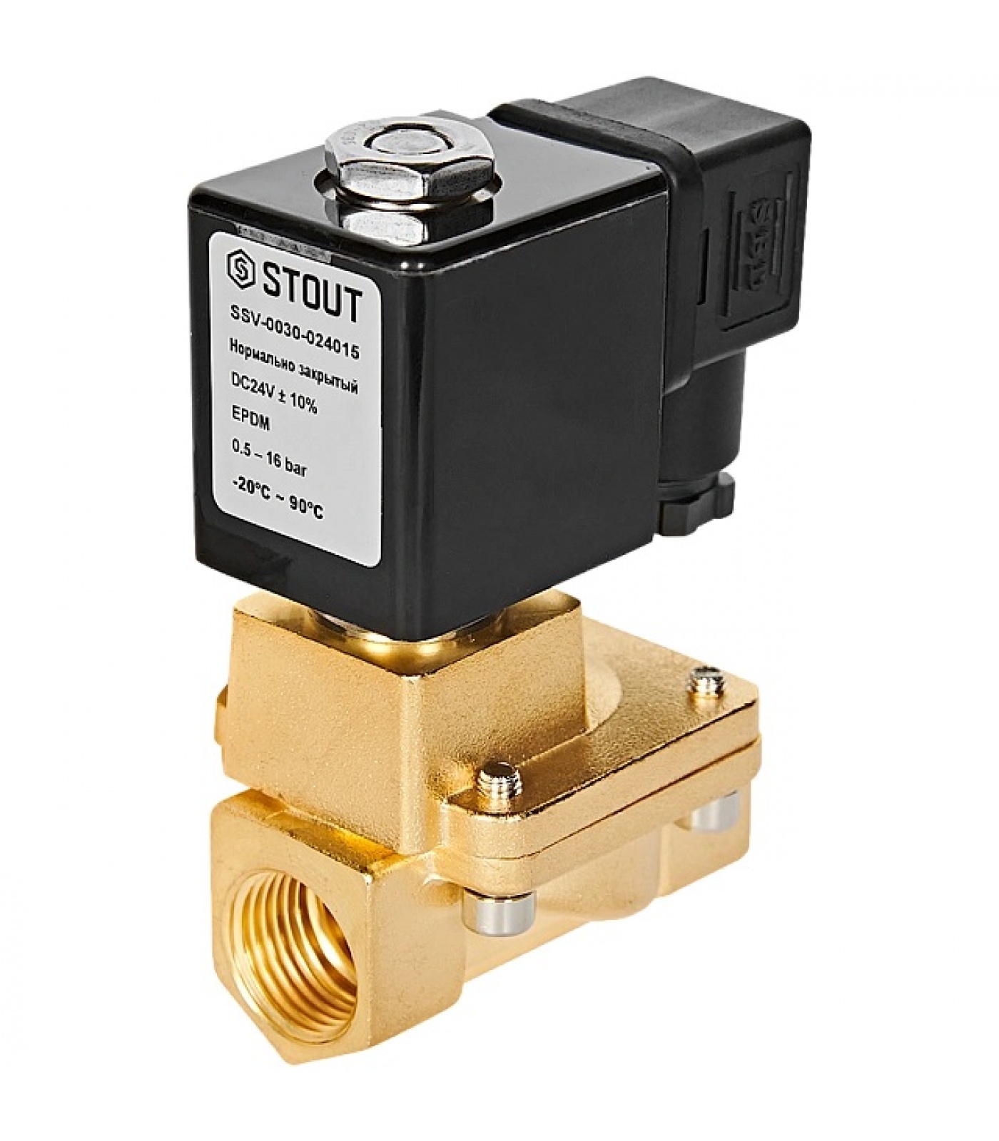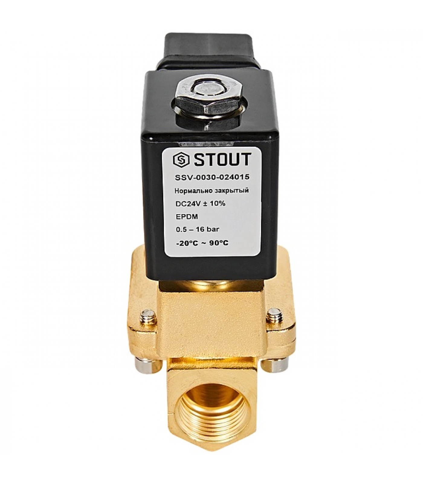 STOUT Клапан соленоидный (электромагнитный), непрямого (пилотного) действия, НЗ, 24В, G1/2, EPDM