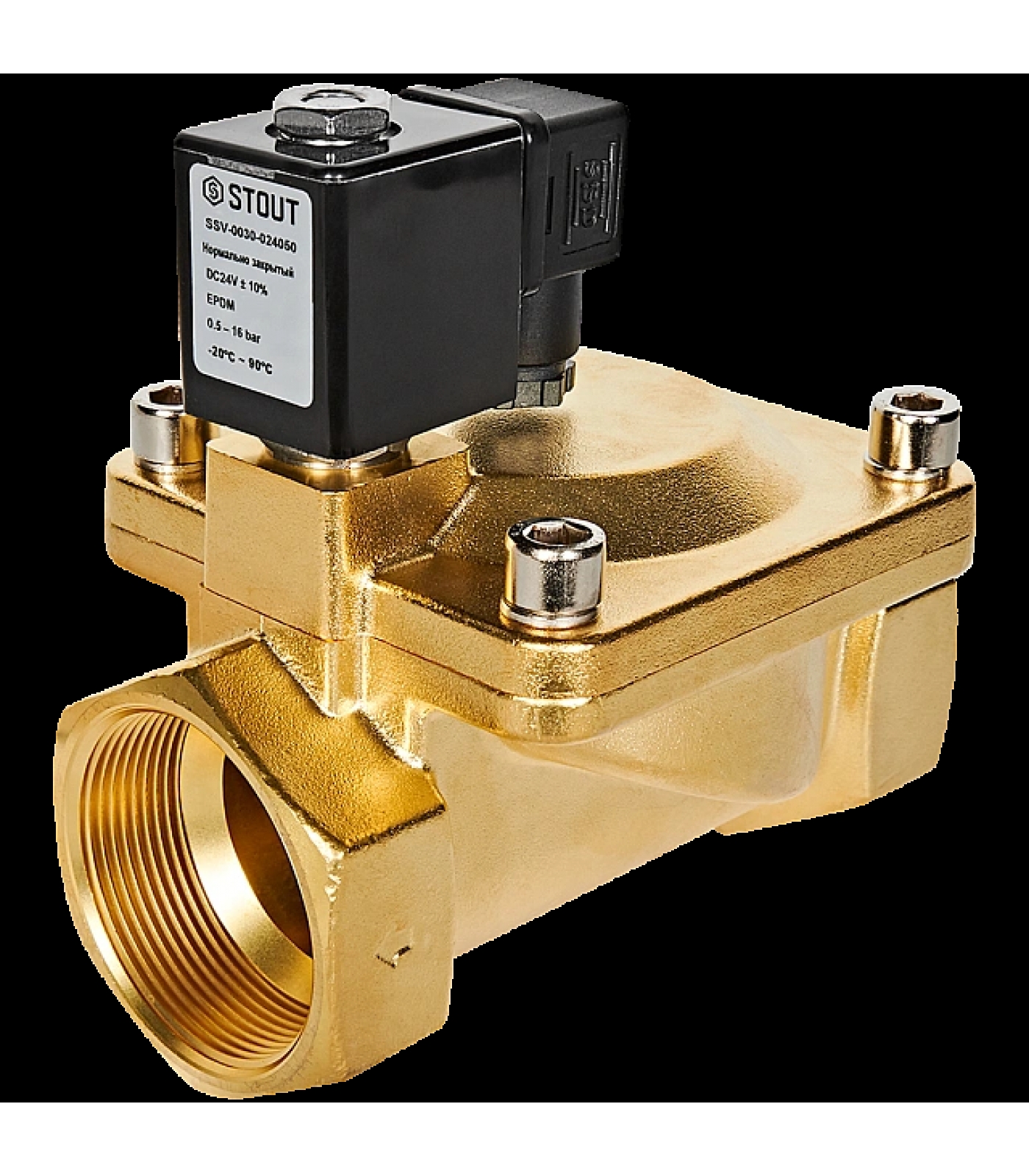 STOUT Клапан соленоидный (электромагнитный), непрямого (пилотного) действия, НЗ, 24В, G2, EPDM