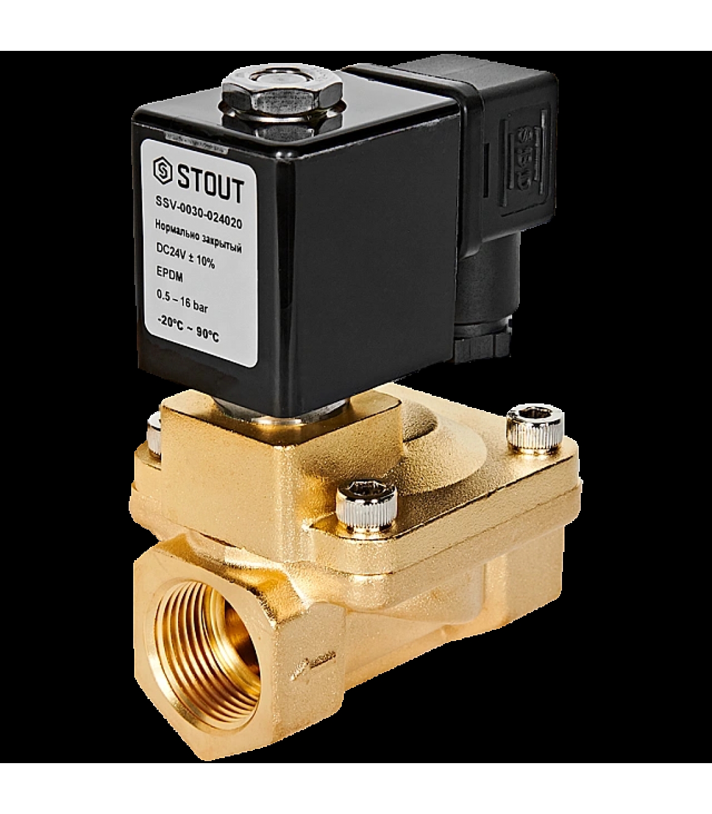STOUT Клапан соленоидный (электромагнитный), непрямого (пилотного) действия, НЗ, 24В, G3/4, EPDM