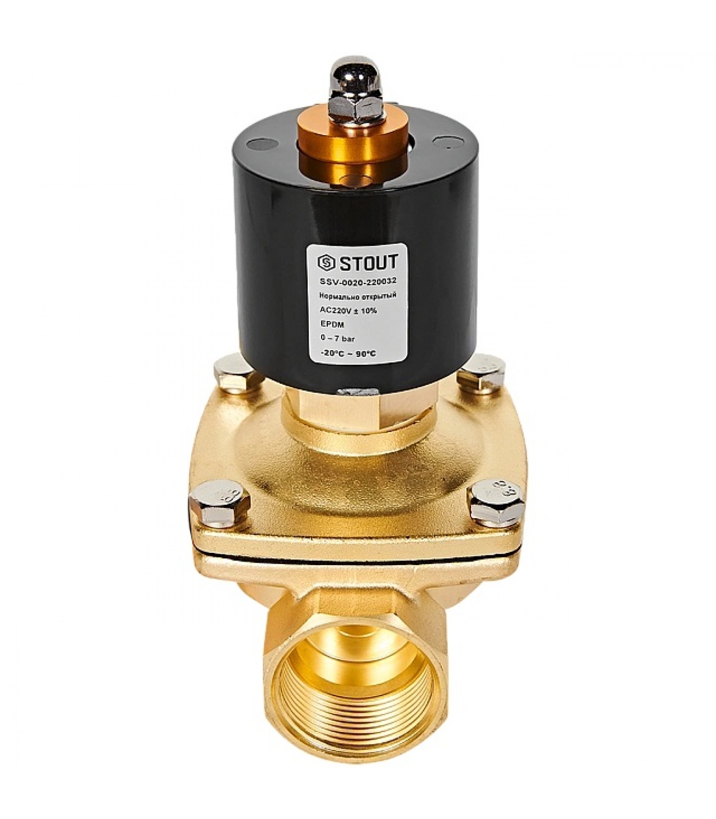STOUT Клапан соленоидный (электромагнитный), прямого действия, НО, 220В, G1 1/4, EPDM