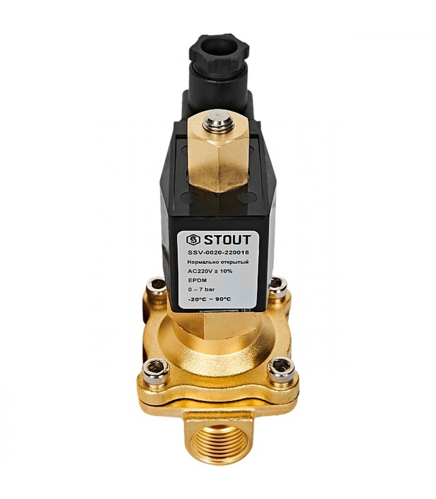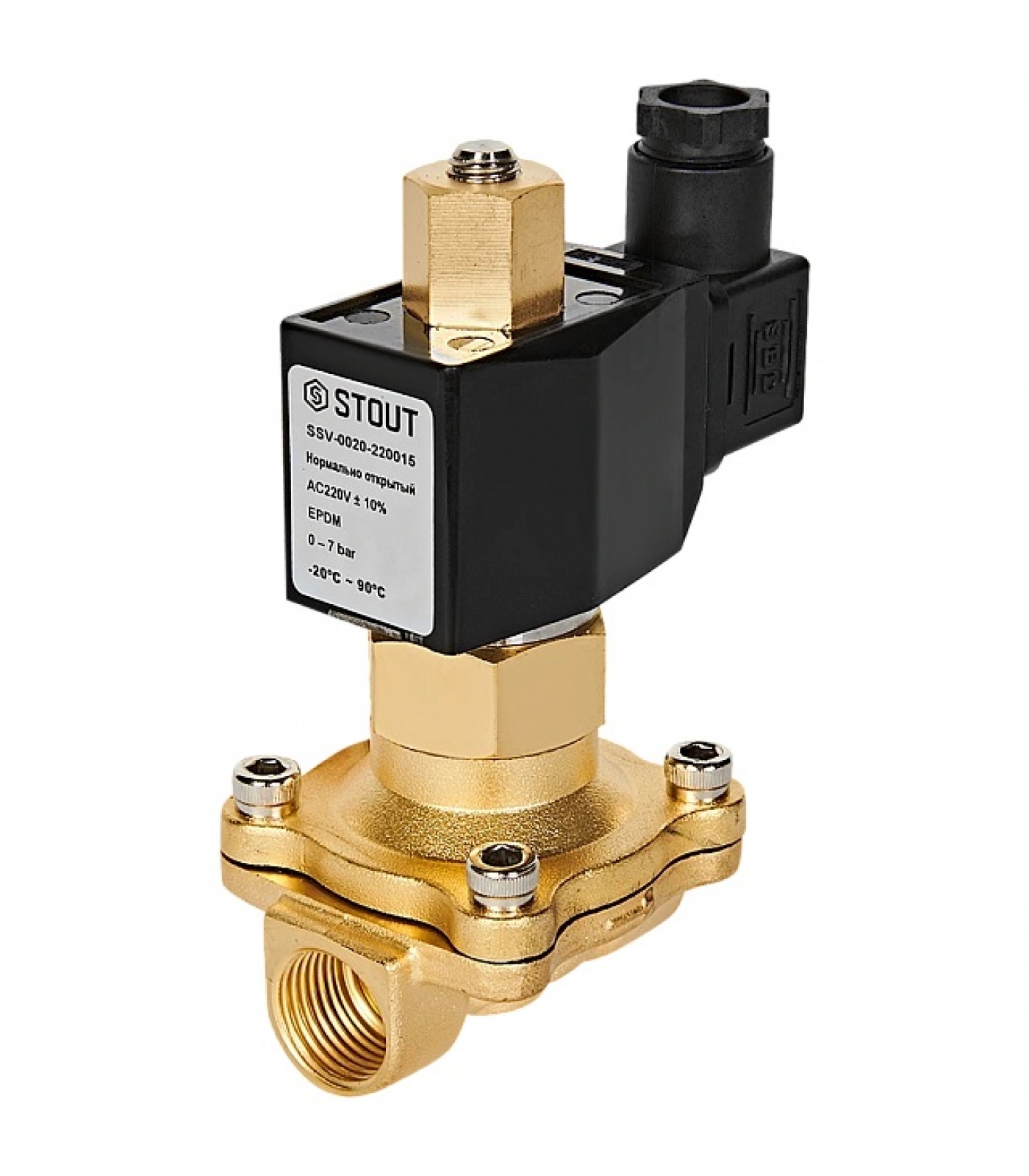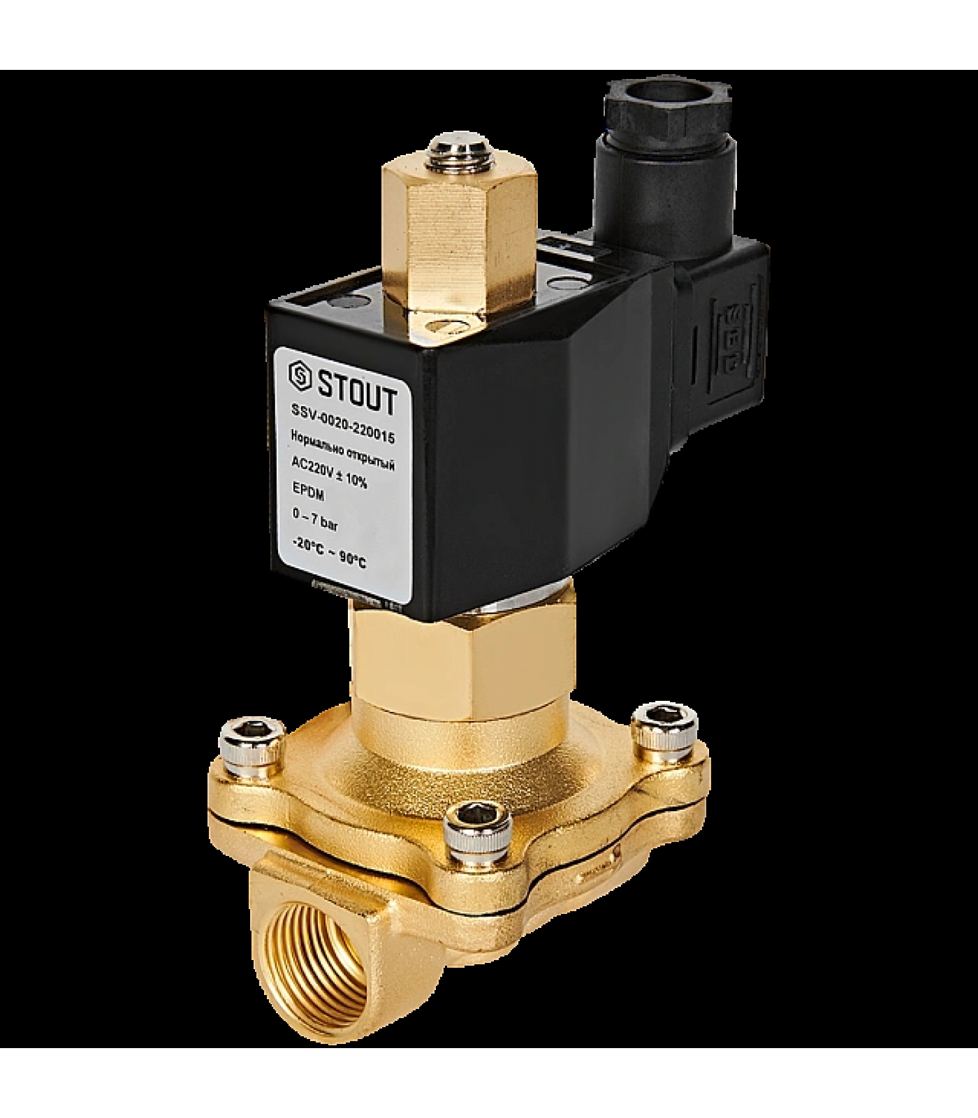 STOUT Клапан соленоидный (электромагнитный), прямого действия, НО, 220В, G1/2, EPDM
