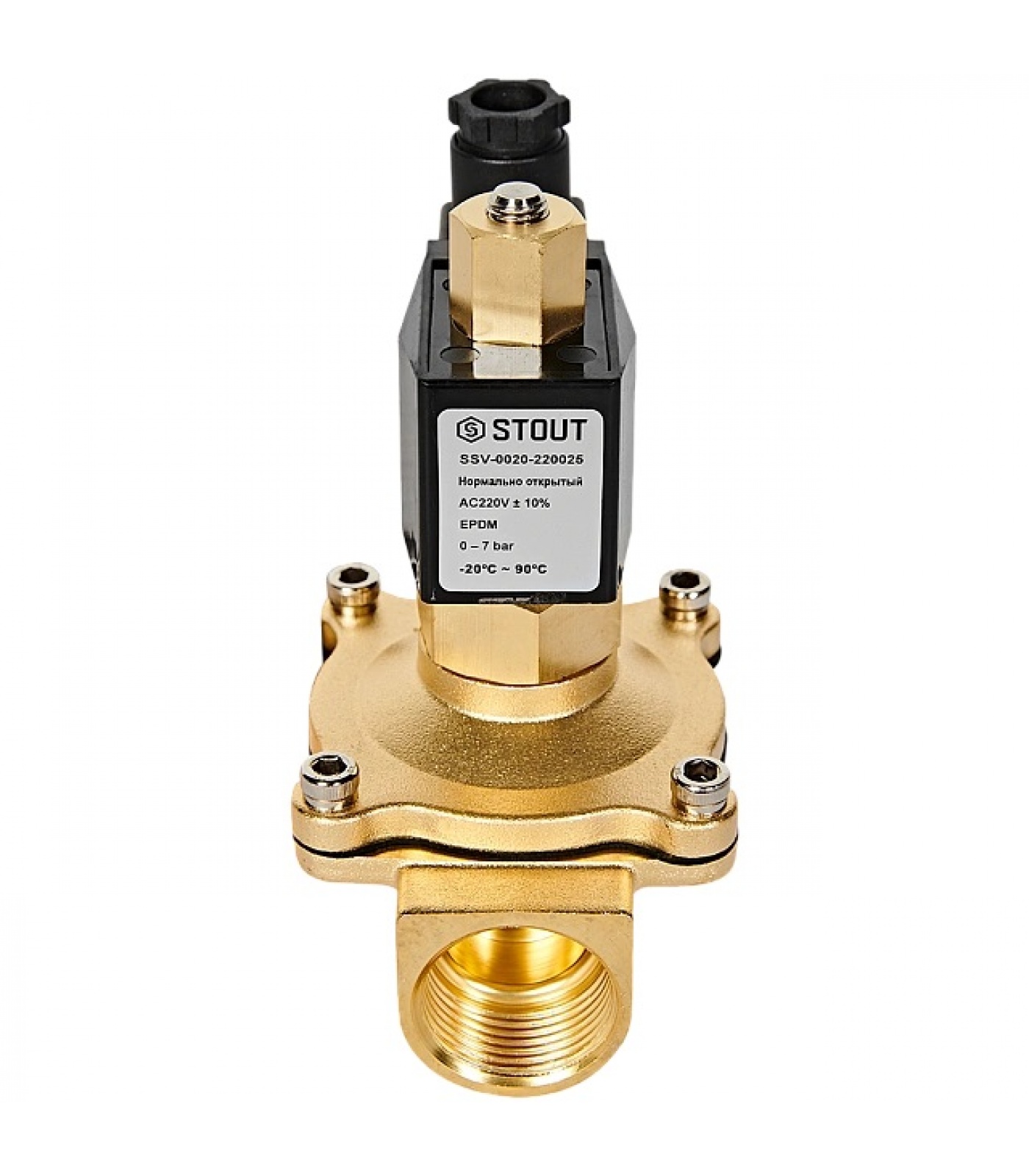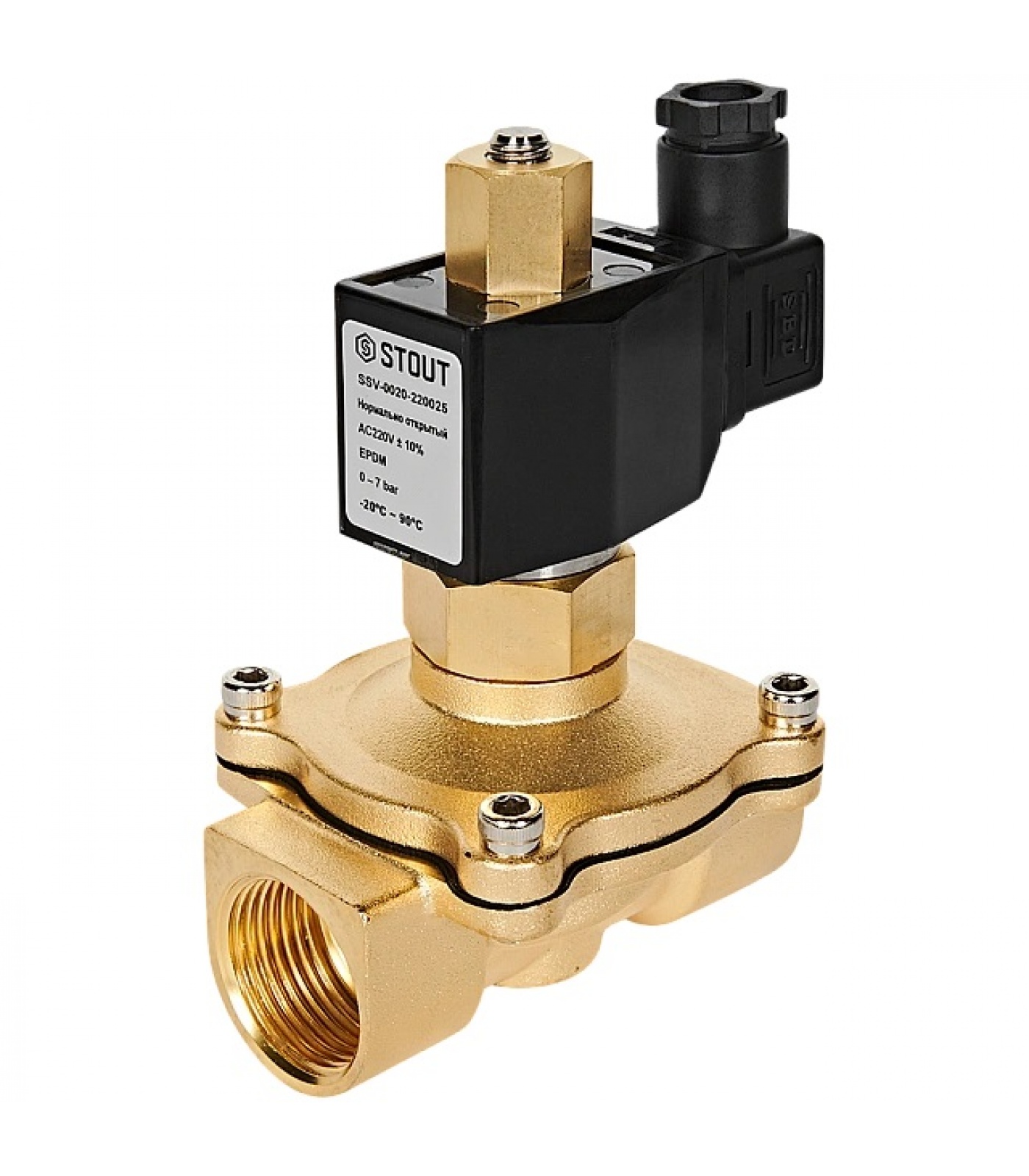 STOUT Клапан соленоидный (электромагнитный), прямого действия, НО, 220В, G1, EPDM