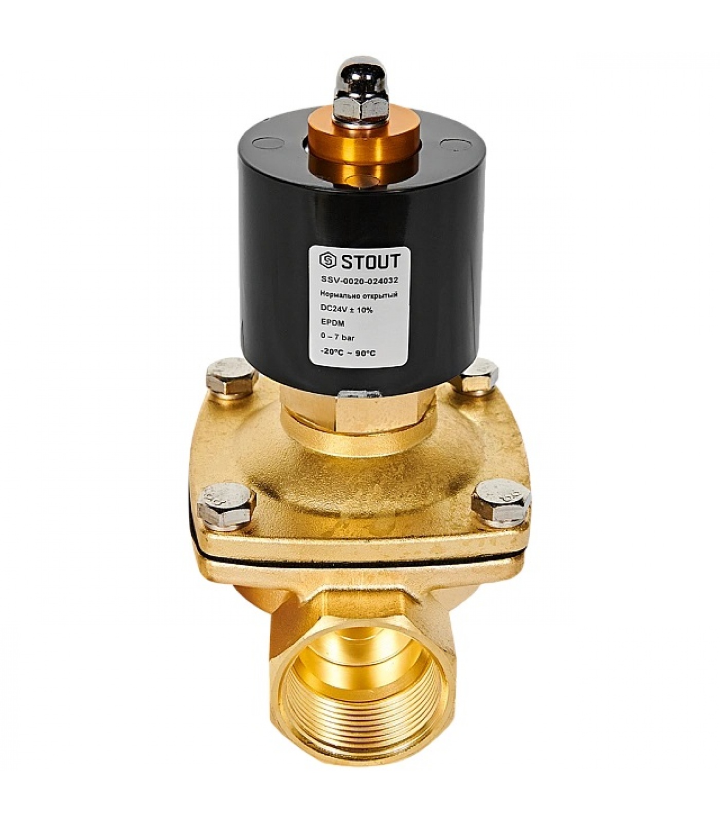 STOUT Клапан соленоидный (электромагнитный), прямого действия, НО, 24В, G1 1/4, EPDM